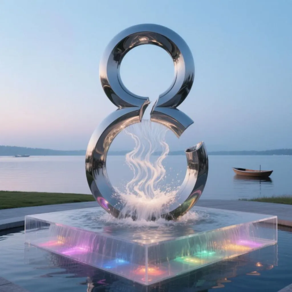 Bring elegance and movement to expansive outdoor spaces with the outdoor 8-shaped large pond fountains with light. This striking design combines contemporary aesthetics with the timeless beauty of flowing water, creating a commanding focal point for any large pond or water feature. As both an artistic sculpture and a functional fountain, it seamlessly blends visual impact with tranquil soundscapes, enhancing any surrounding environment.