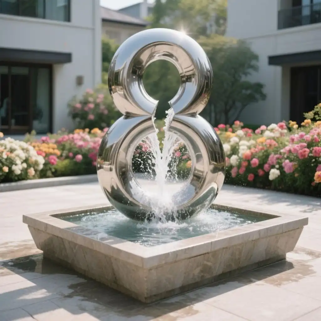 The 8-shaped design holds rich symbolic significance. Often associated with infinity, continuity, and harmony, this form embodies the balance between movement and stillness. Water continuously circulates through its smooth curves, symbolizing prosperity and renewal. For business environments, cultural venues, or residential estates, these large pond fountains bring not only visual beauty but also auspicious meaning.