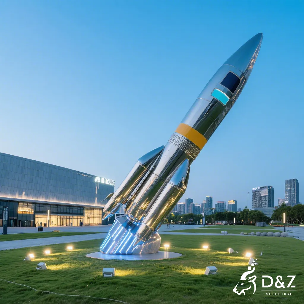 D&Z Art Sculpture presents this premium large rocket sculpture, crafted from high-grade mirror-polished stainless steel. Perfectly suited for science museums, tech parks, or city squares, these customizable masterpieces symbolize human ambition and the spirit of exploration.