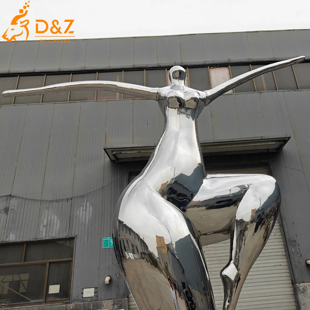 Engineered for both beauty and endurance, the metal abstract figure sculpture is made from high-grade stainless steel. Its mirror-polished finish reflects sunlight and surroundings, turning the sculpture into a dynamic visual centerpiece that changes with the environment.