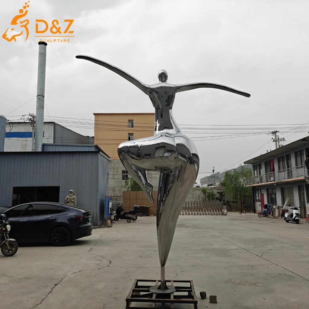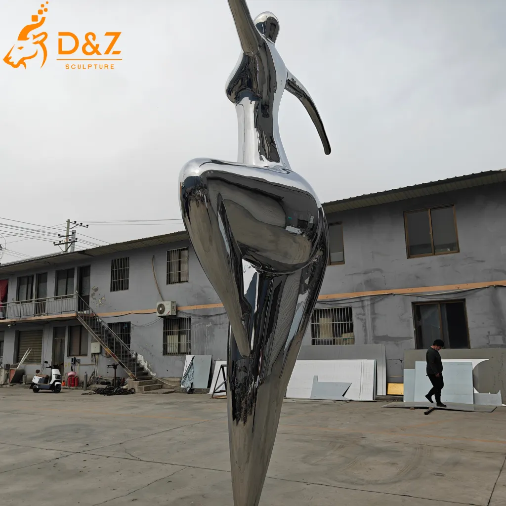 At the intersection of steel and light and shadow, a dancer is dancing in the city. She spreads her arms and leaps up, and her figure is light and dreamy. This high-quality stainless steel large abstract figure sculpture, with its smooth lines and elegant posture, perfectly combines abstract art with modern aesthetics, interpreting the harmonious resonance of power and beauty, stillness and movement.