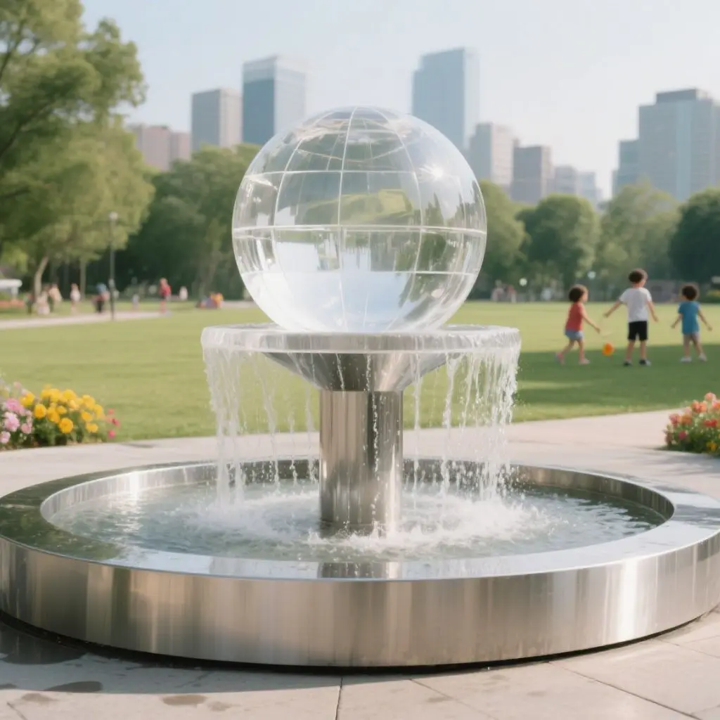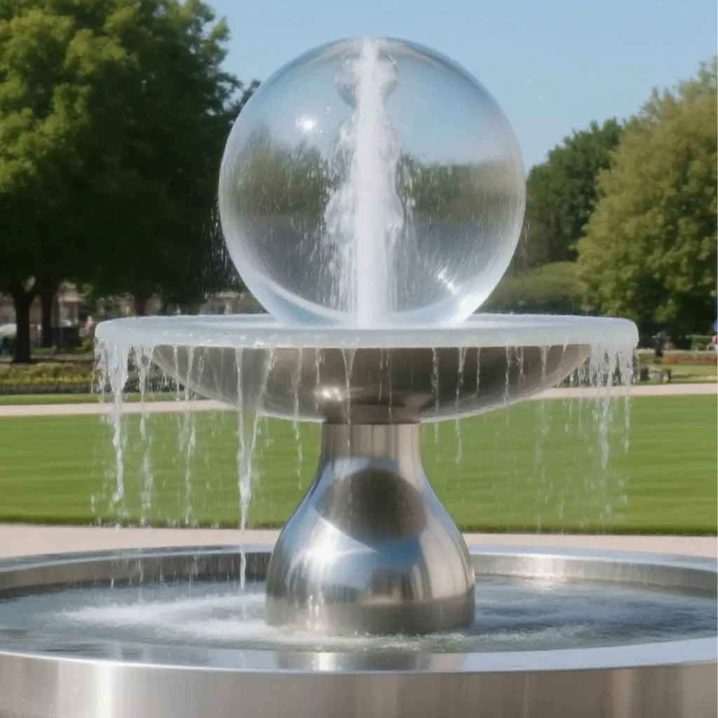 Constructed with precision, the acrylic sphere water fountain showcases high-quality craftsmanship in every detail. The transparent acrylic sphere resists weathering and maintains clarity even in harsh outdoor conditions. The base and supporting elements are made of corrosion-resistant stainless steel, offering strength and long-lasting durability. The polished stainless steel surface enhances the fountain’s reflective qualities, adding visual depth to gardens and public plazas.