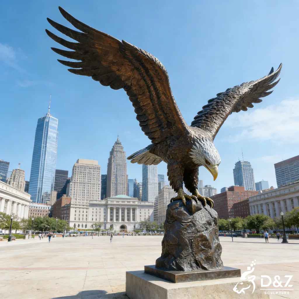 As a premier symbol of strength and freedom, this large bronze American bald eagle sculpture is designed to be a breathtaking centerpiece for any landscape. Whether you are looking for a bald eagle statue for outdoor use or a professional bald eagle carving for a public square, D&Z Art Sculpture provides museum-quality craftsmanship tailored to your specific vision.