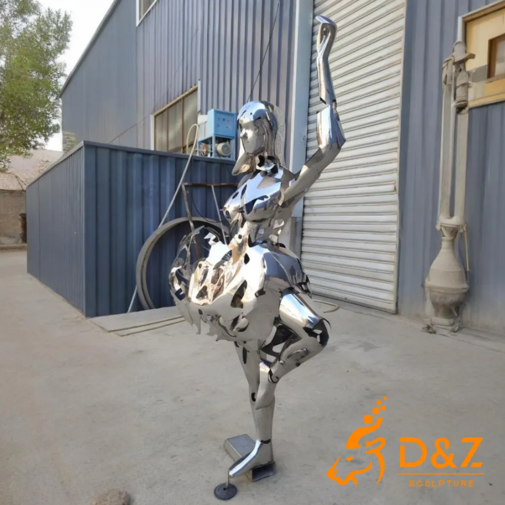 This mirrored stainless steel abstract hollow ballet dancer sculpture is not just a decoration—it’s a conversation between art and architecture, movement and metal. With customizable options available, D&Z Sculpture offers bespoke designs tailored to your vision. Contact us and act now!