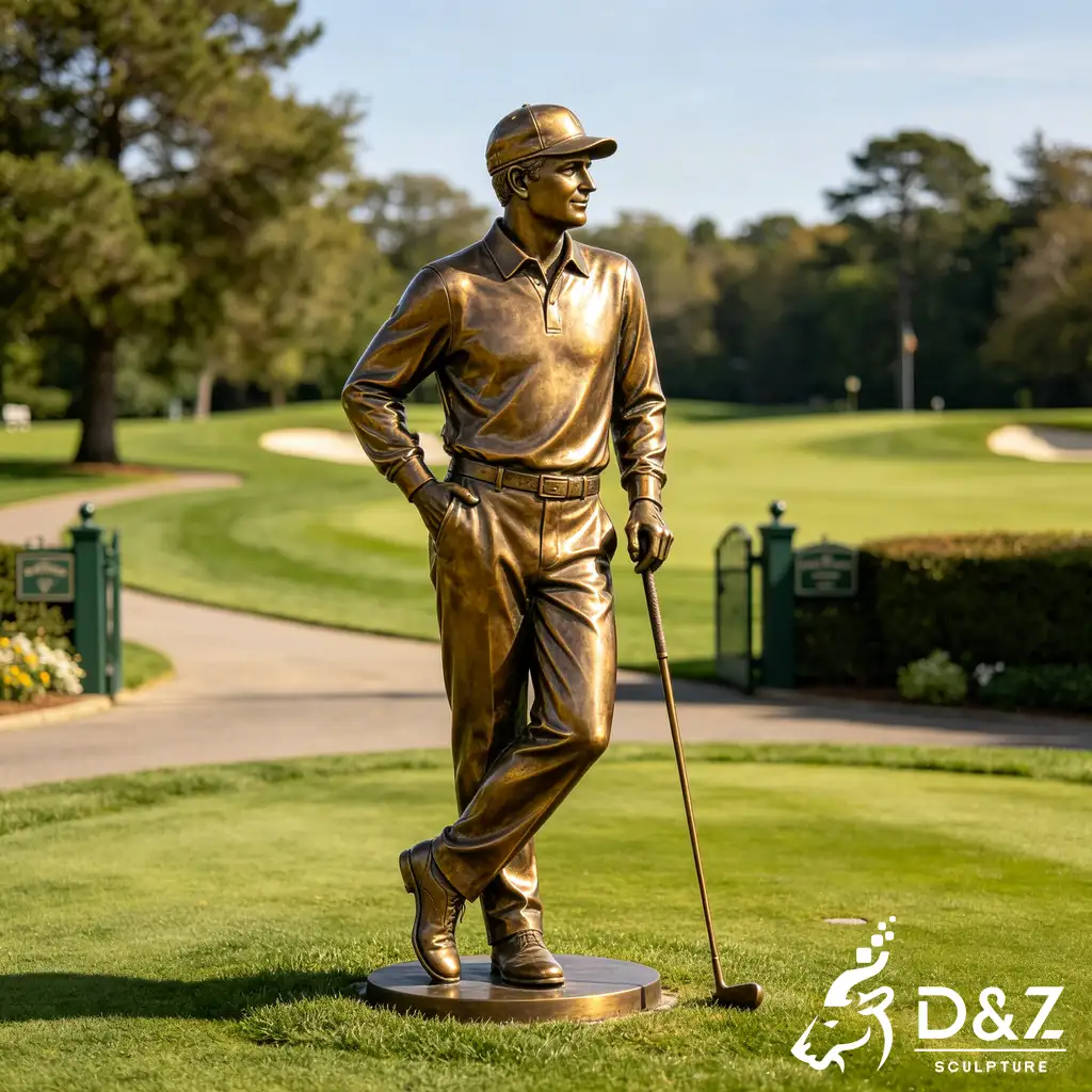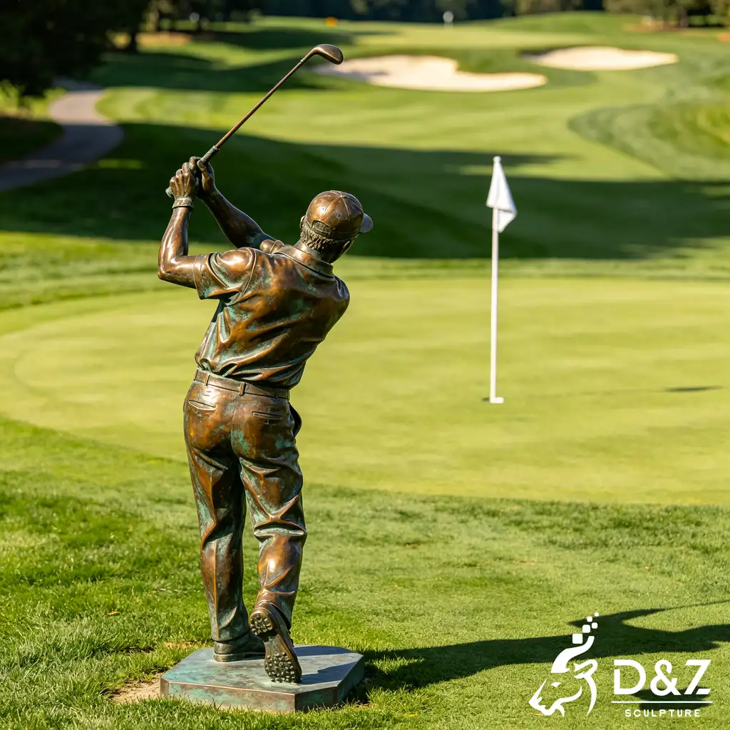 This bronze golfer statue transforms any golf course or outdoor space into a premium visual landmark. Designed for high-end environments, it blends artistic craftsmanship with realistic sports aesthetics. Created by D&Z Art Sculpture, this life-size golfer statue enhances prestige, attracts attention, and reinforces a refined golf culture.