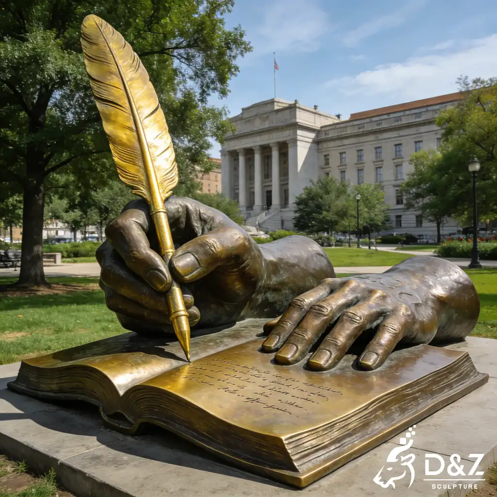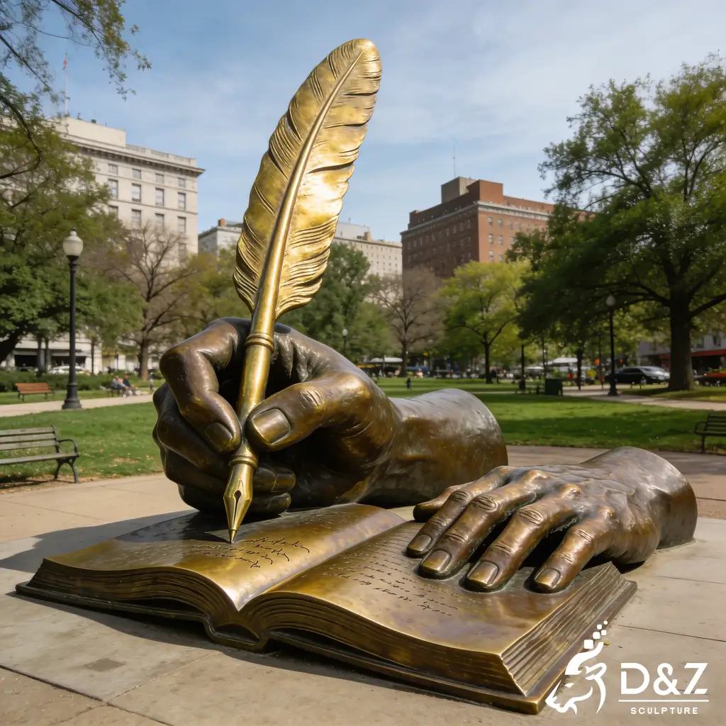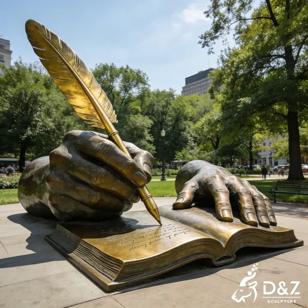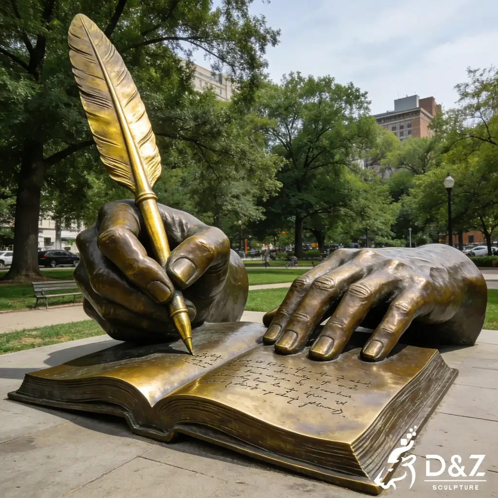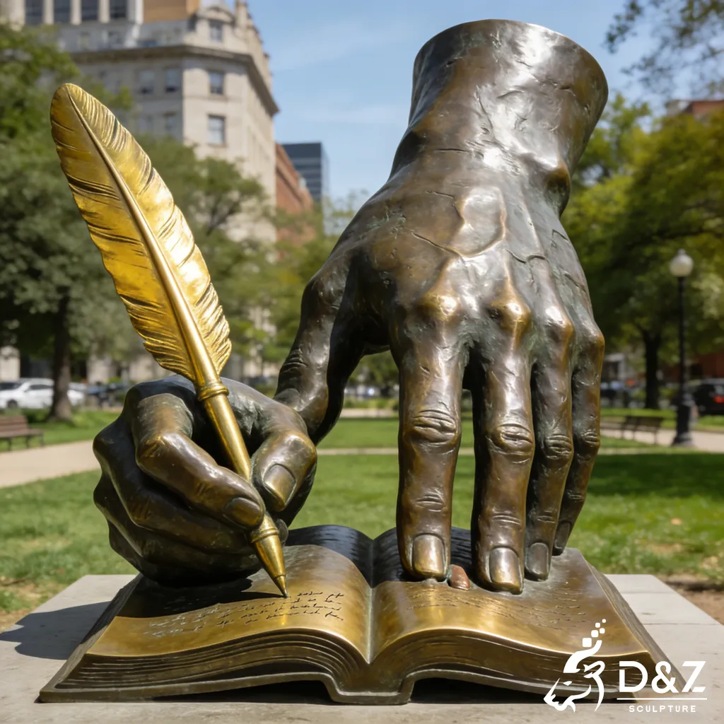 As a premier manufacturer with 30 years of expertise, D&Z Art Sculpture presents the large bronze hand sculpture with a feather pen. This exquisite bronze hand sculpture serves as a profound symbol of knowledge, creativity, and history, making it the ultimate focal point for educational institutions, public libraries, and corporate plazas. Our custom hand sculpture services ensure that each piece is tailored to your specific landscape requirements, blending professional craftsmanship with enduring artistic value.