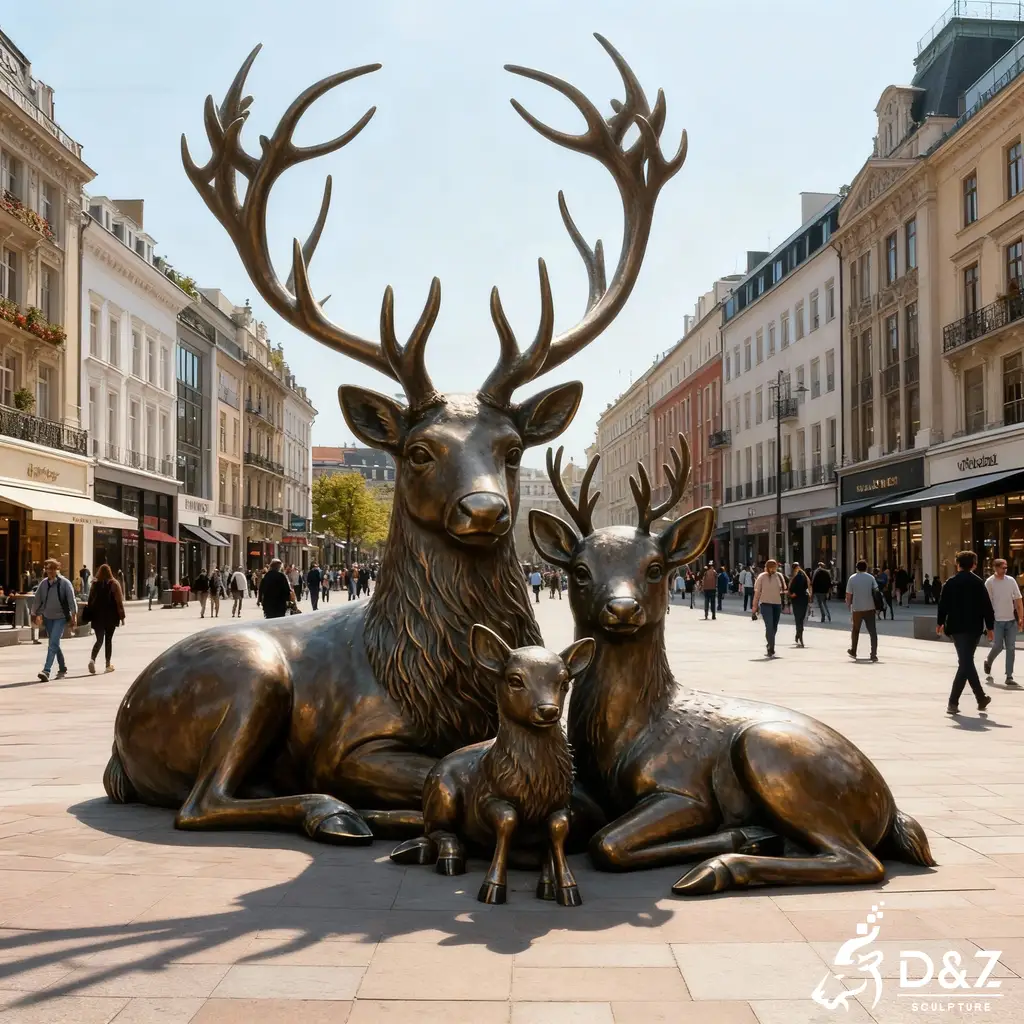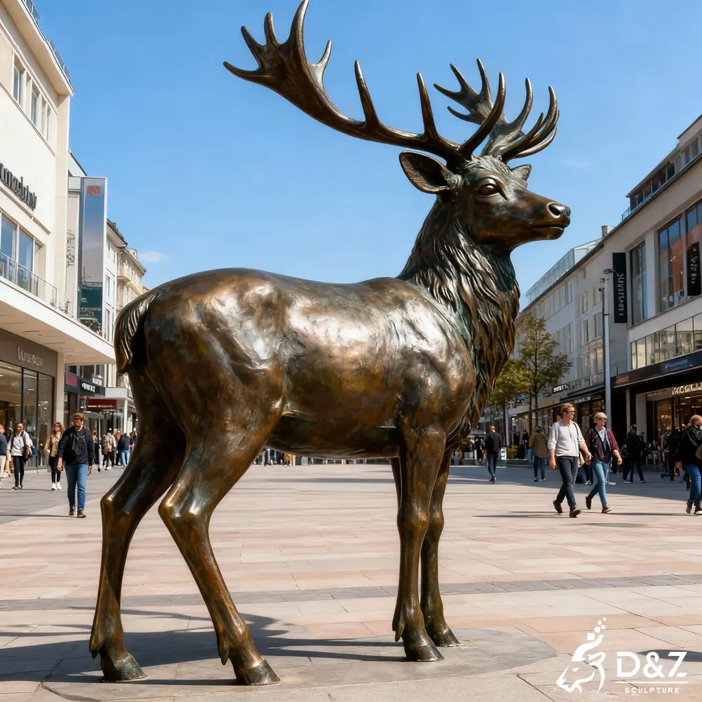 This bronze reindeer statue brings playful Christmas charm to shopping streets, plazas, hotels, and private estates. It offers striking visual impact, durable outdoor performance, and a joyful spirit perfect for the holiday season.