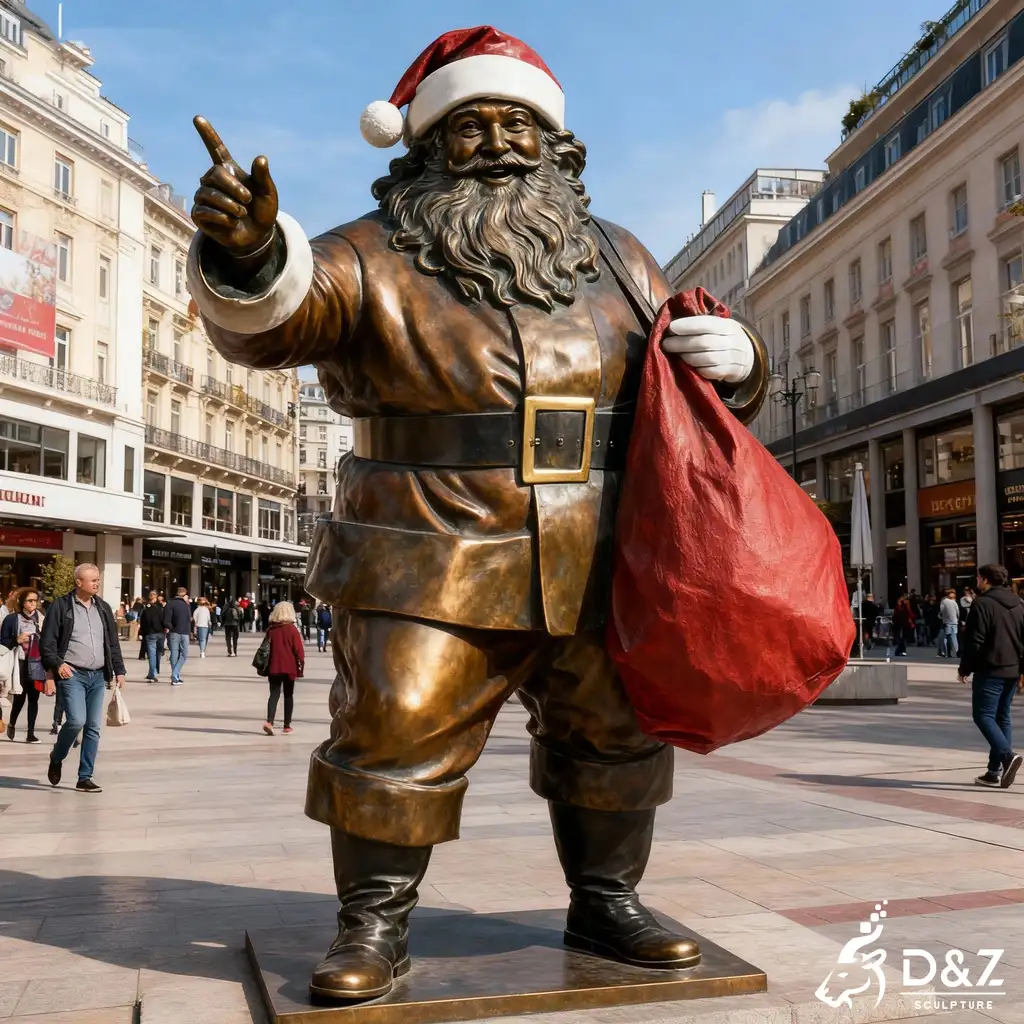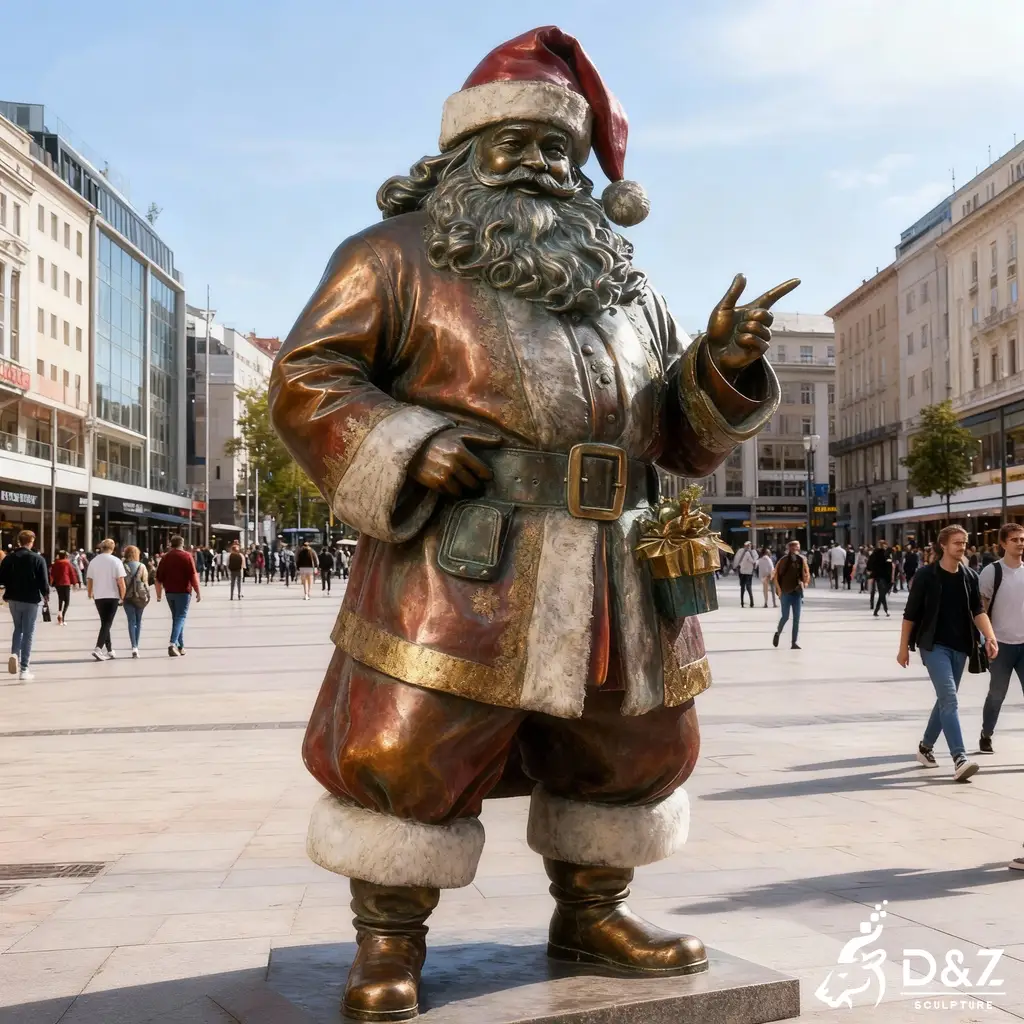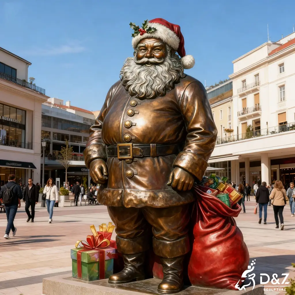 This bronze Santa Claus statue brings a joyful Christmas spirit to commercial plazas, city streets, shopping centers, and private estates. It stands as a bold holiday landmark that instantly elevates any seasonal décor.
