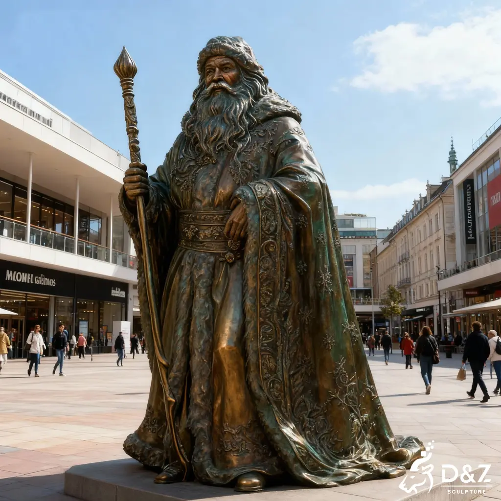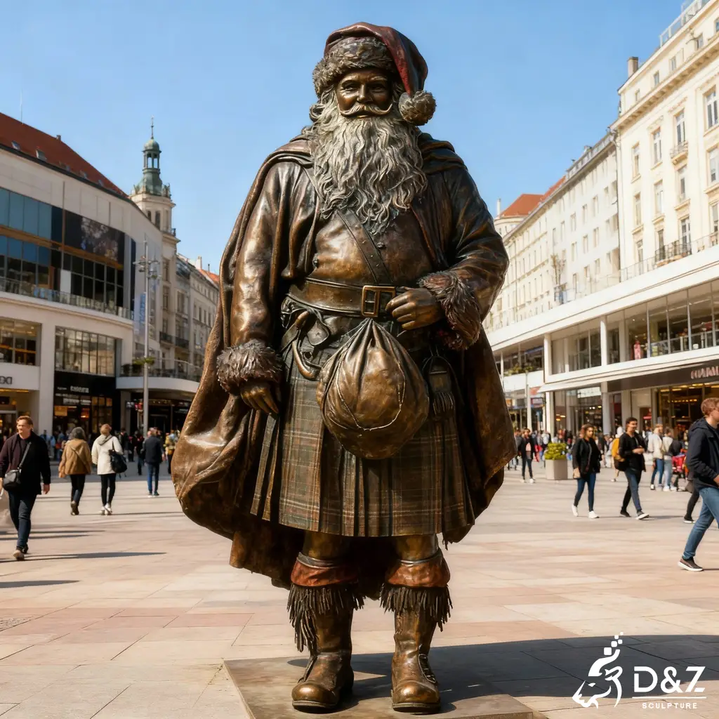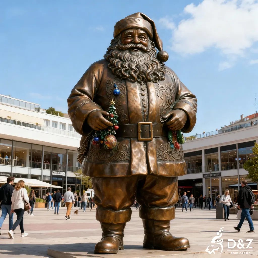 This bronze Santa Claus statue brings a joyful Christmas spirit to commercial plazas, city streets, shopping centers, and private estates. It stands as a bold holiday landmark that instantly elevates any seasonal décor.