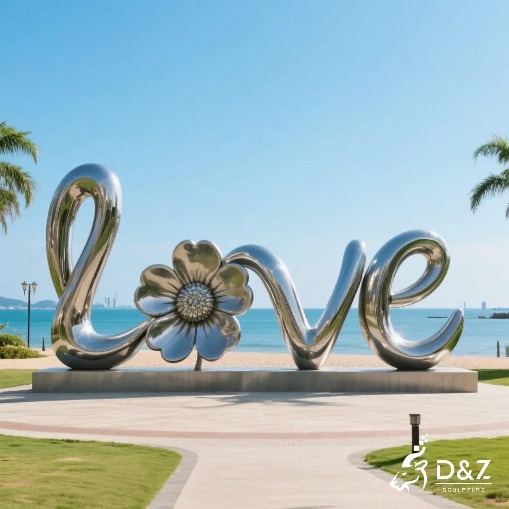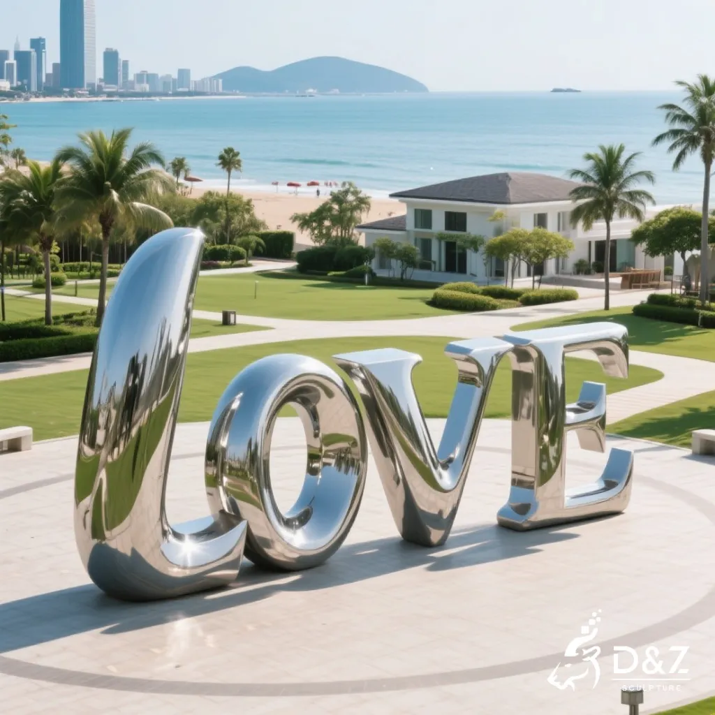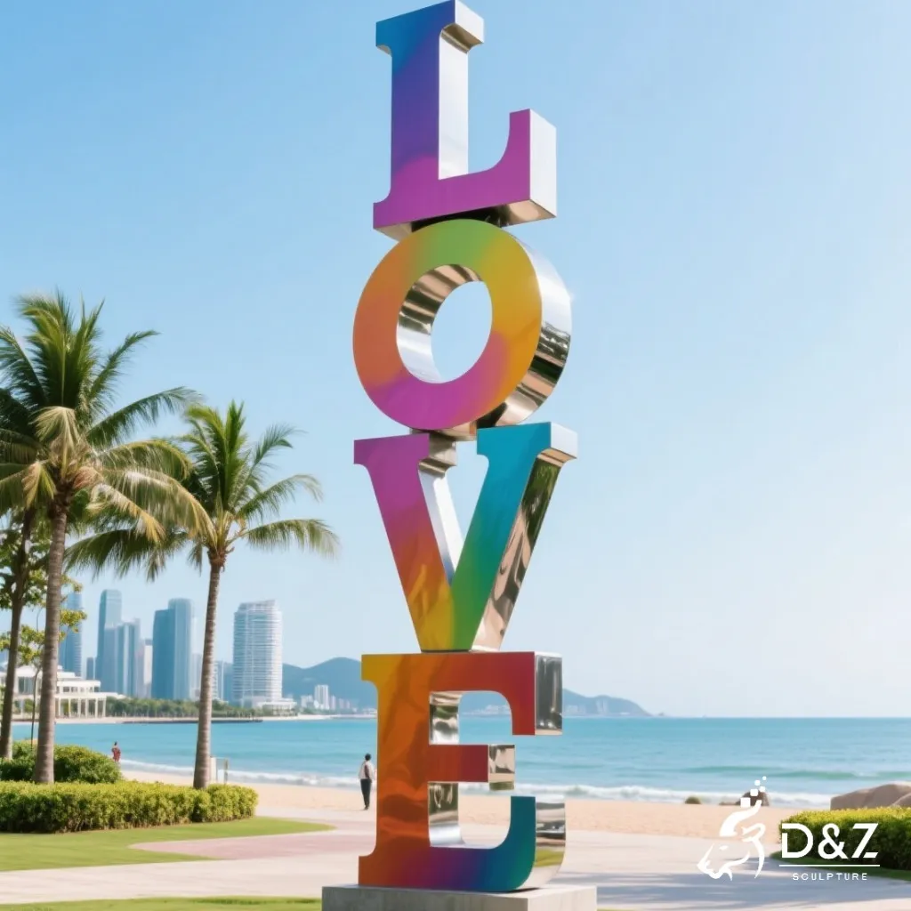 We use top-tier stainless steel for durability and shine, ensuring your love artwork sculpture withstands harsh weather and stays stunning for years. The process includes precision metal forging, hand-painted coloring (for vibrant styles), and polished finishing. Every detail is refined, making it a sculpture of love that’s as robust as it is beautiful.