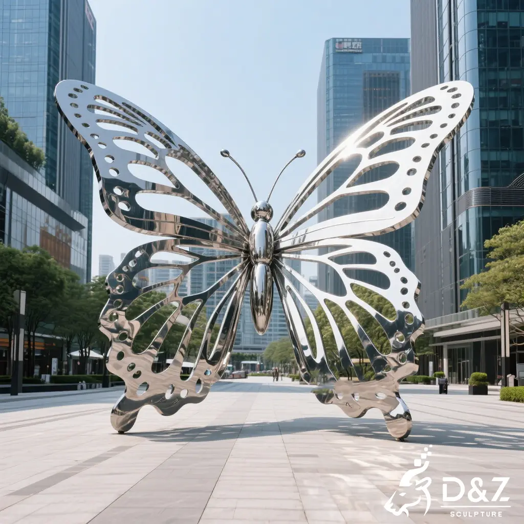 D&Z Art Sculpture presents this stunning butterfly metal sculpture series, expertly crafted from high-grade stainless steel. Perfect for gardens, plazas, and luxury estates, these outdoor butterfly sculptures combine durable craftsmanship with artistic grace. Each piece is fully customizable in size, finish, and design to suit your unique vision.