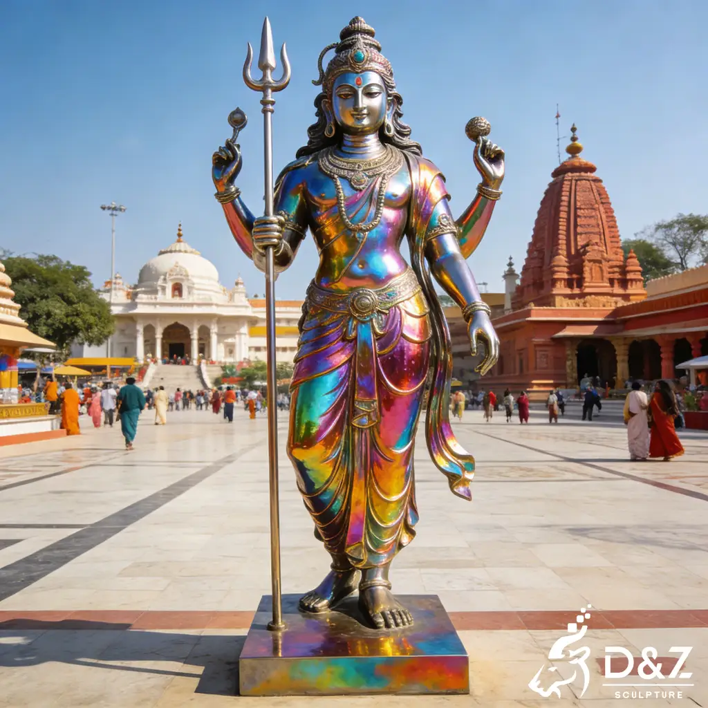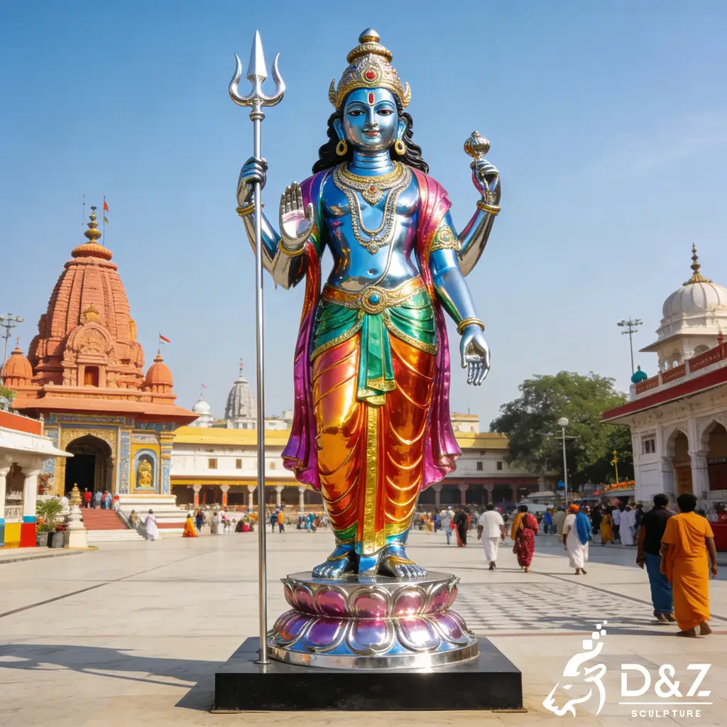 The colorful modern Vishnu sculpture is a striking fusion of sacred Hindu symbolism and contemporary artistic expression. Crafted from high-quality stainless steel and finished with a vibrant rainbow surface, this sculpture creates a powerful visual centerpiece for temples, spiritual gardens, and cultural plazas.