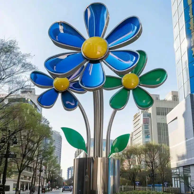 Bright, whimsical, and irresistibly eye-catching, this giant stainless steel daisy sculpture brings a delightful burst of color and nature-inspired charm to any public space. Designed to mimic a blooming field of cheerful daisies, the sculpture towers high with vibrant, oversized flowers in red, yellow, blue, pink, and silver. It transforms plazas, city parks, and cultural venues into spaces filled with imagination, joy, and modern artistic flair.
