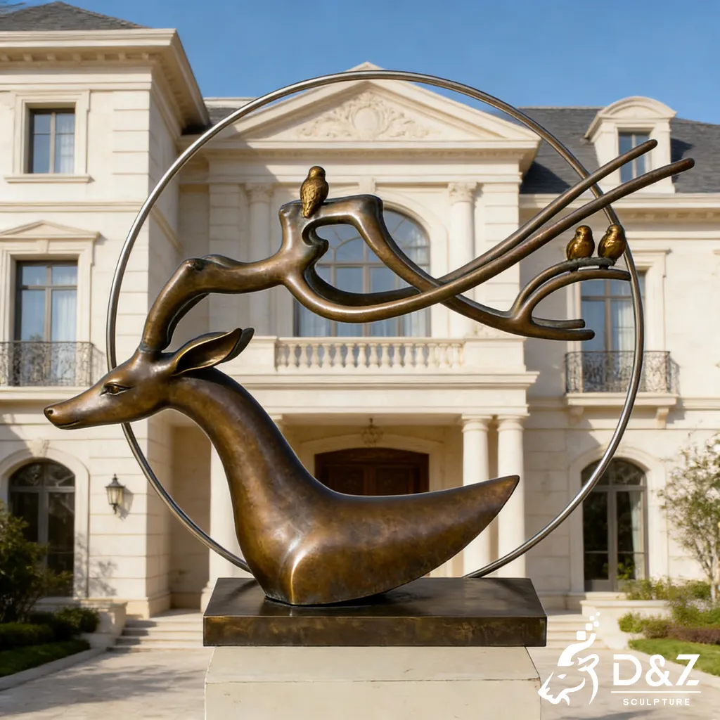 Our latest collection features a unique fusion of nature and modern art. Whether you are looking for a realistic bronze deer statue or a modern brass deer statue, our designs capture the grace and strength of the majestic stag. These deer statues for the yard are crafted to resonate with their surroundings, offering a serene yet powerful presence. The intricate antler designs—drawing on elements of traditional landscape art—make these pieces more than just deer statues; they are contemporary masterpieces suitable for luxury villas, corporate parks, and public gardens.