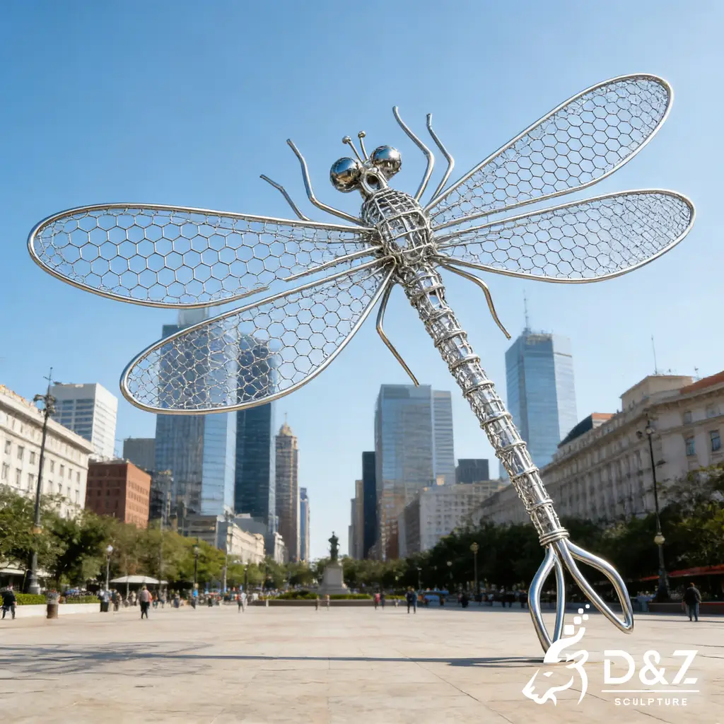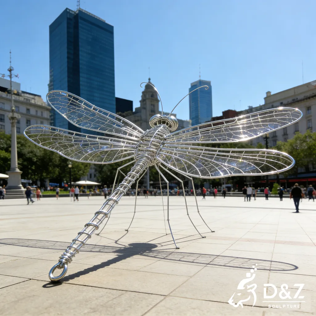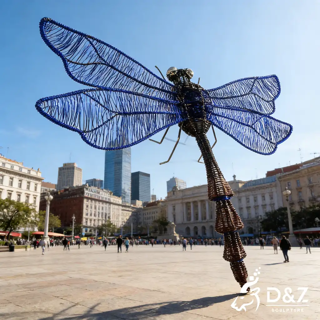 Handcrafted dragonfly wire sculpture by D&Z Art Sculpture– the perfect fusion of delicate natural beauty and modern metal artistry. This large dragonfly garden sculpture transforms any outdoor space into a captivating focal point, symbolizing change, lightness, and freedom.