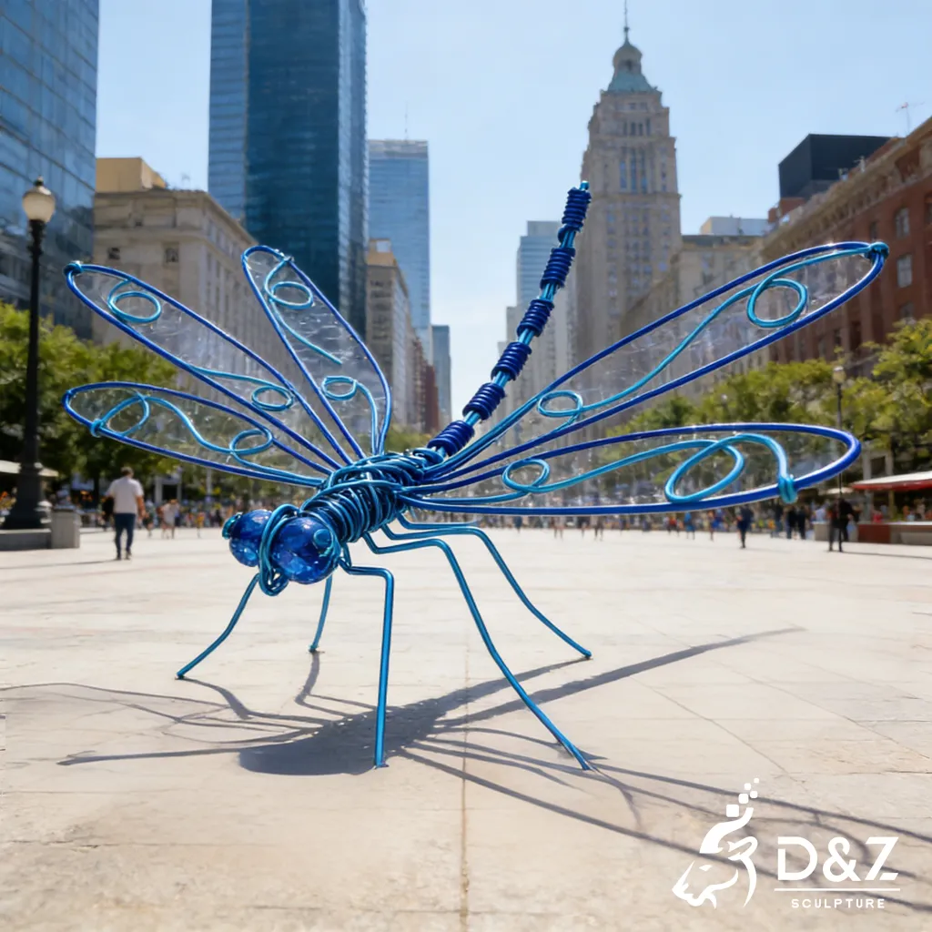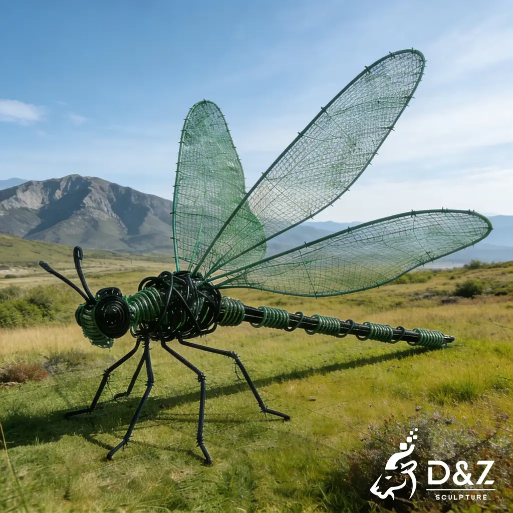 Our dragonfly wire sculpture draws inspiration from the graceful flight and iridescent wings of real dragonflies. Whether you prefer a realistic style with lifelike proportions or a more contemporary, abstract interpretation featuring flowing spiral lines, this metal dragonfly sculpture delivers a stunning visual impact. Ideal for both outdoor dragonfly sculpture installations and covered patios, it creates mesmerizing light and shadow effects throughout the day.