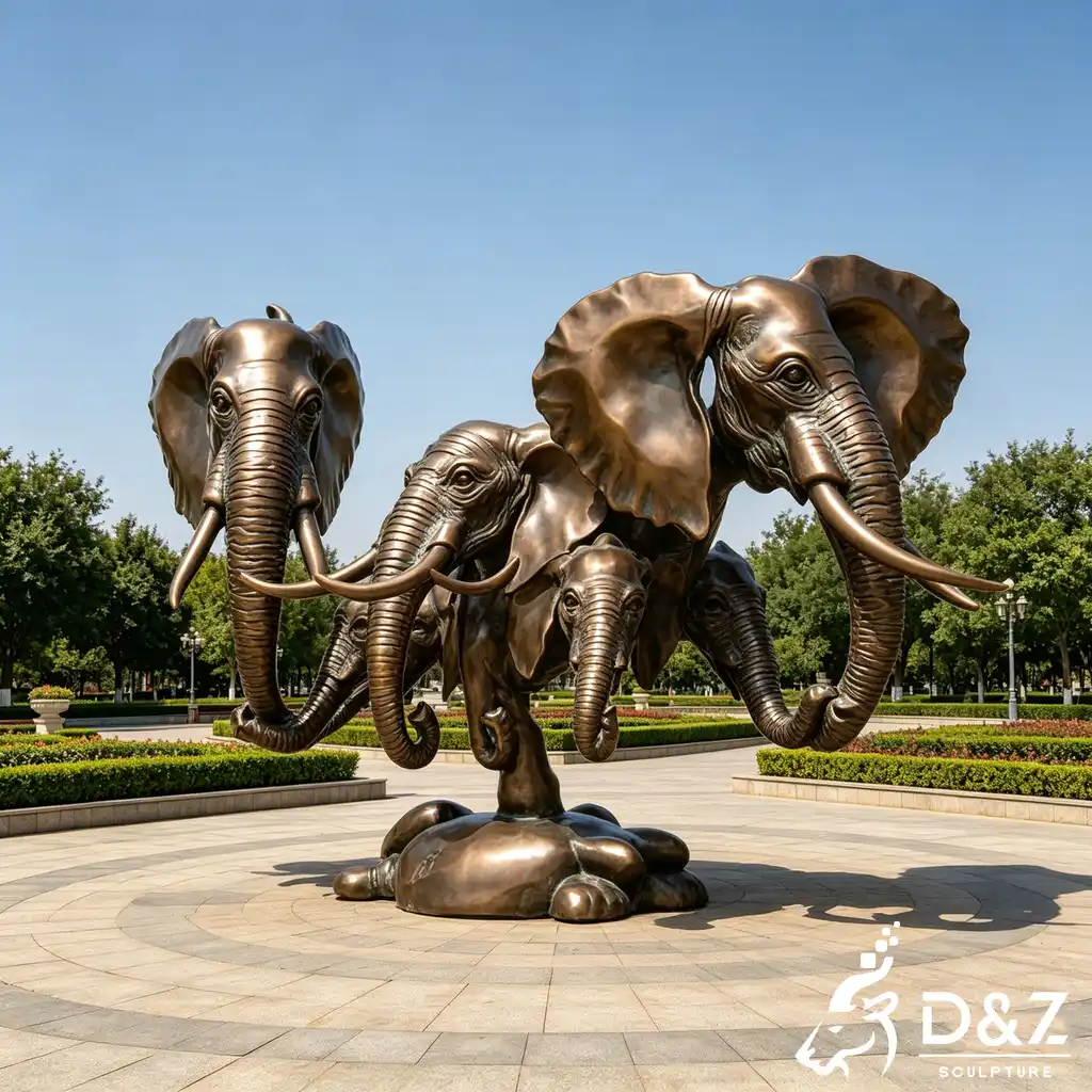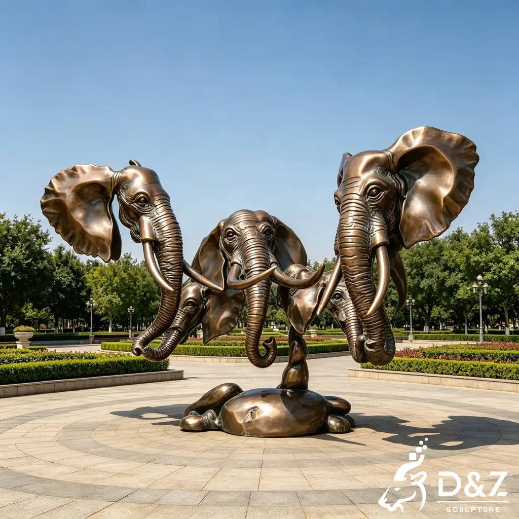 This elephant family sculpture concept amplifies these values through multiple heads, representing collective power and harmony. It is an ideal good luck elephant statue for civic and commercial environments.