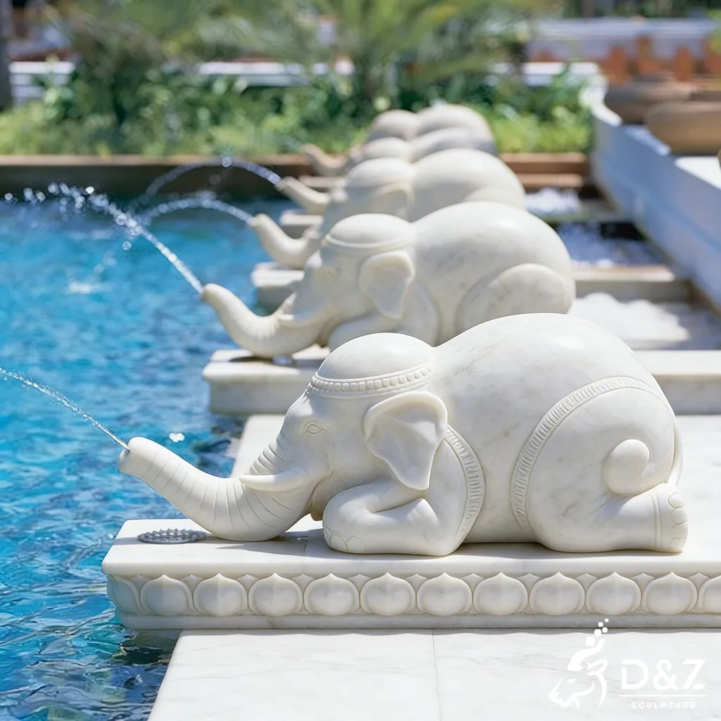 Discover the exquisite elephant water fountain from D&Z Art Sculpture – a hand-carved white marble masterpiece that brings playful elegance and soothing water flow to luxury outdoor spaces. Perfect as an elephant fountain pool centerpiece or elephant garden fountain, this large-scale sculpture combines timeless craftsmanship with customizable design to elevate any landscape.