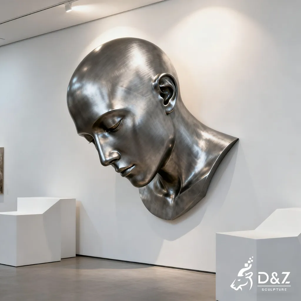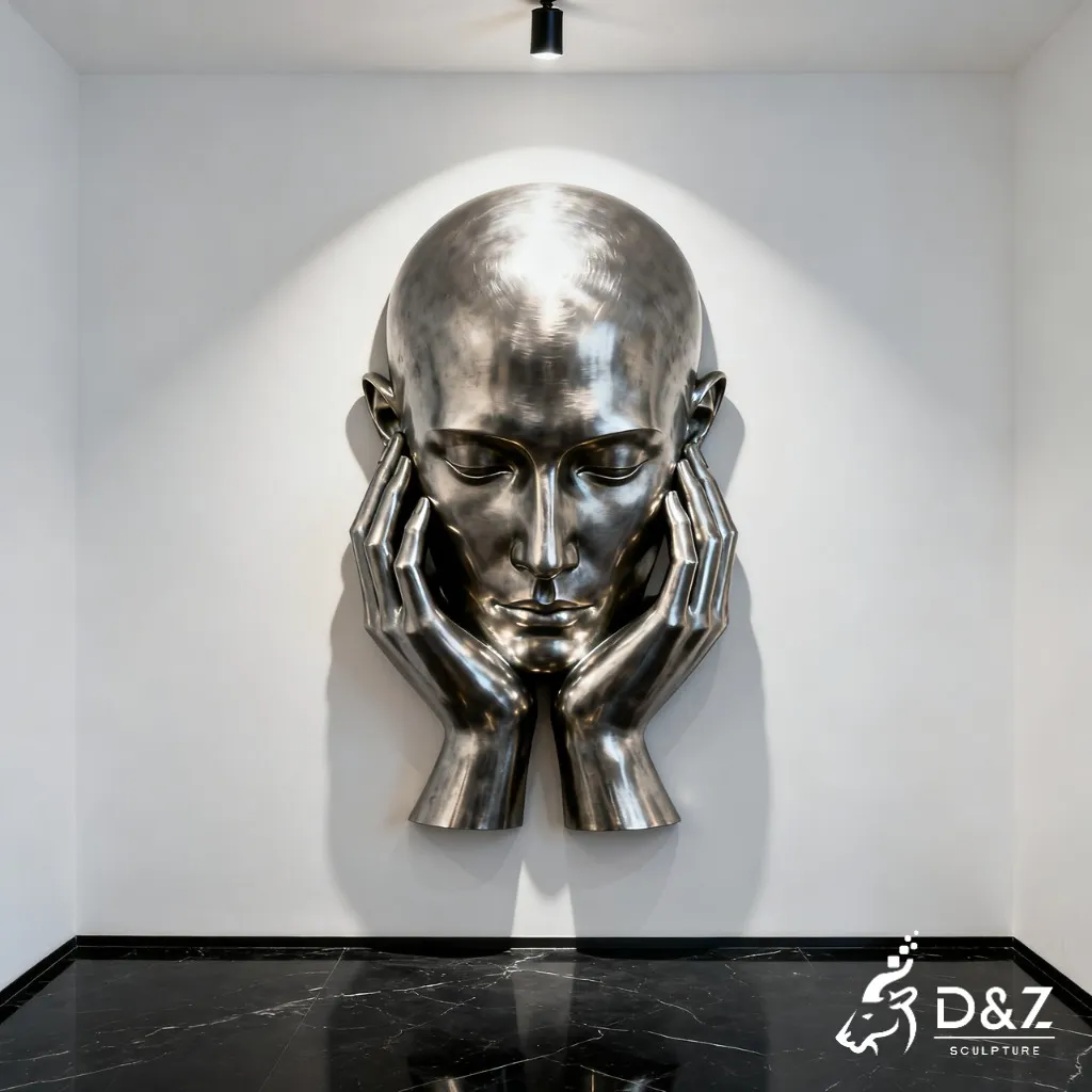 This metal face wall sculpture captures the beauty of human emotion through sleek modern design. With closed eyes and a peaceful expression, it creates a tranquil, elegant presence on any wall. Crafted from premium stainless steel, the sculpture transforms minimalist spaces into art galleries filled with depth and reflection.