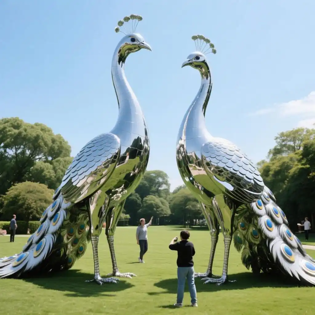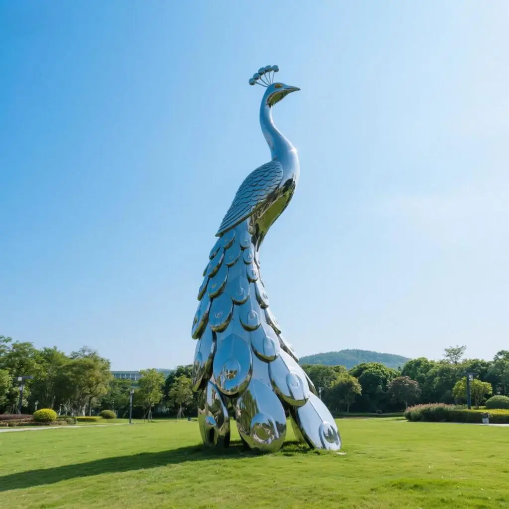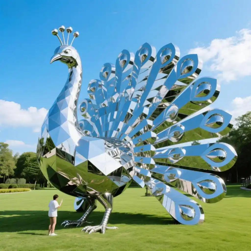 This mirror-polished stainless steel garden peacock sculpture stands out not only for its scale and beauty, but also for its artistic and technical highlights: