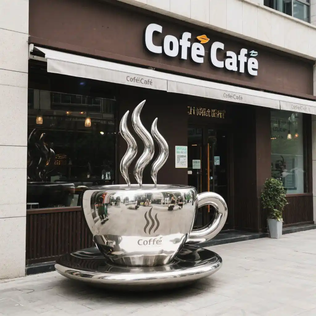 Crafted from polished stainless steel, this giant coffee cup sculpture mimics a real coffee cup with striking realism. Its gleaming metal surface shines day and night, instantly grabbing attention and transforming your café into a neighborhood landmark sculpture. The bold design radiates coffee culture energy, inviting passersby to step inside.