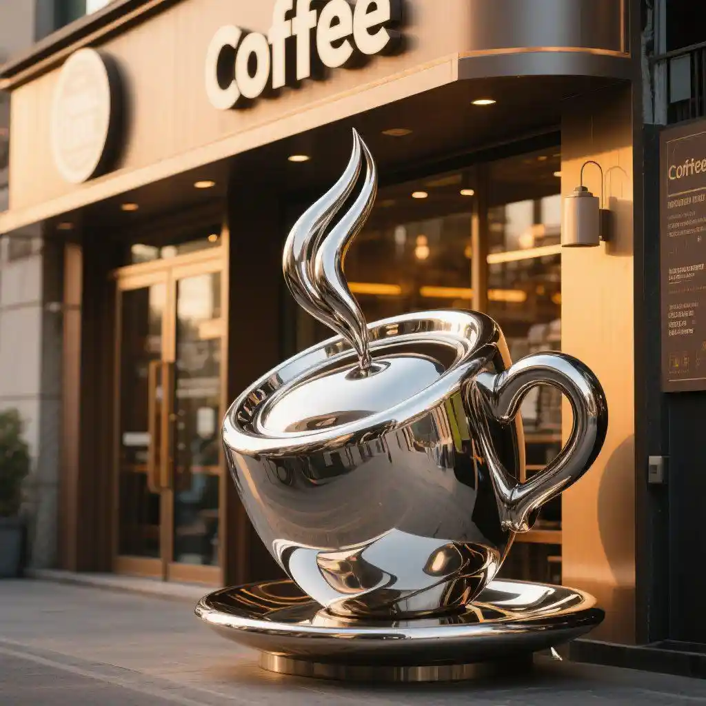 The giant coffee cup sculpture is a stunning stainless steel masterpiece. Combining artistry and functionality, this oversized coffee cup design elevates storefronts into captivating destinations. The coffee cup sculpture merges art, advertising, and ambiance into a single iconic piece. Elevate your café’s presence, spark curiosity, and brew a lasting impression with a sculpture that celebrates coffee culture in grand style. Let your storefront pour out creativity!