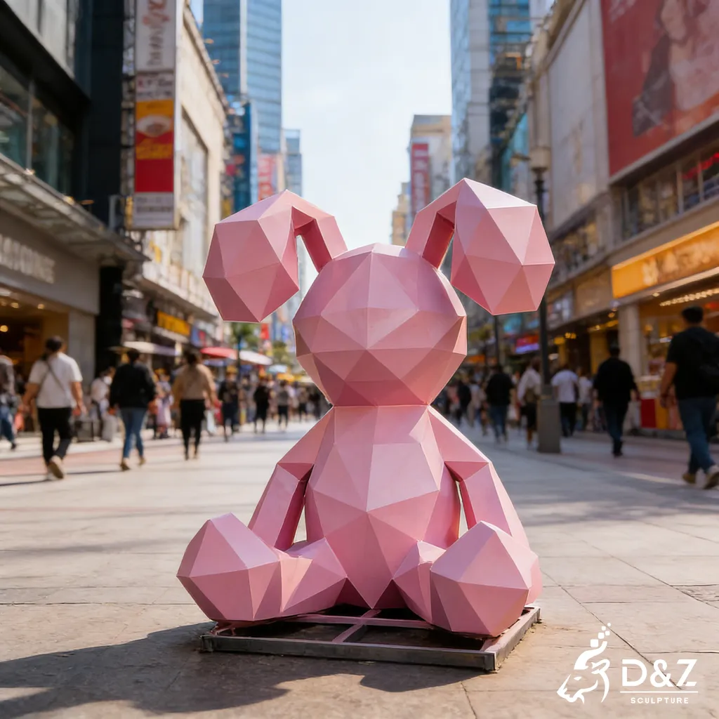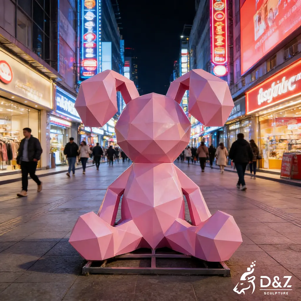 This giant rabbit sculpture is a large-scale geometric animal statue inspired by contemporary urban art. By reimagining the rabbit through angular, faceted forms, the sculpture transforms a familiar animal into an eye-catching abstract geometric sculpture. It blends playfulness with modern design, making it a powerful visual symbol in public and commercial spaces.