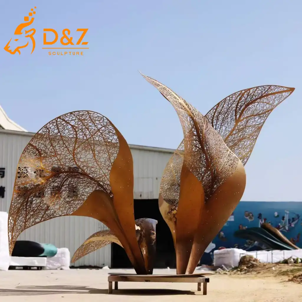 This metal leaf garden sculpture also reflects harmony between nature and modern industry—an artistic balance that resonates strongly in contemporary landscape design.