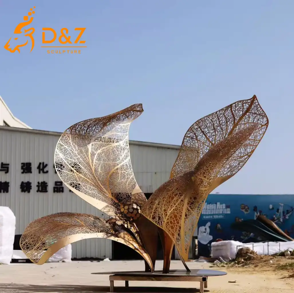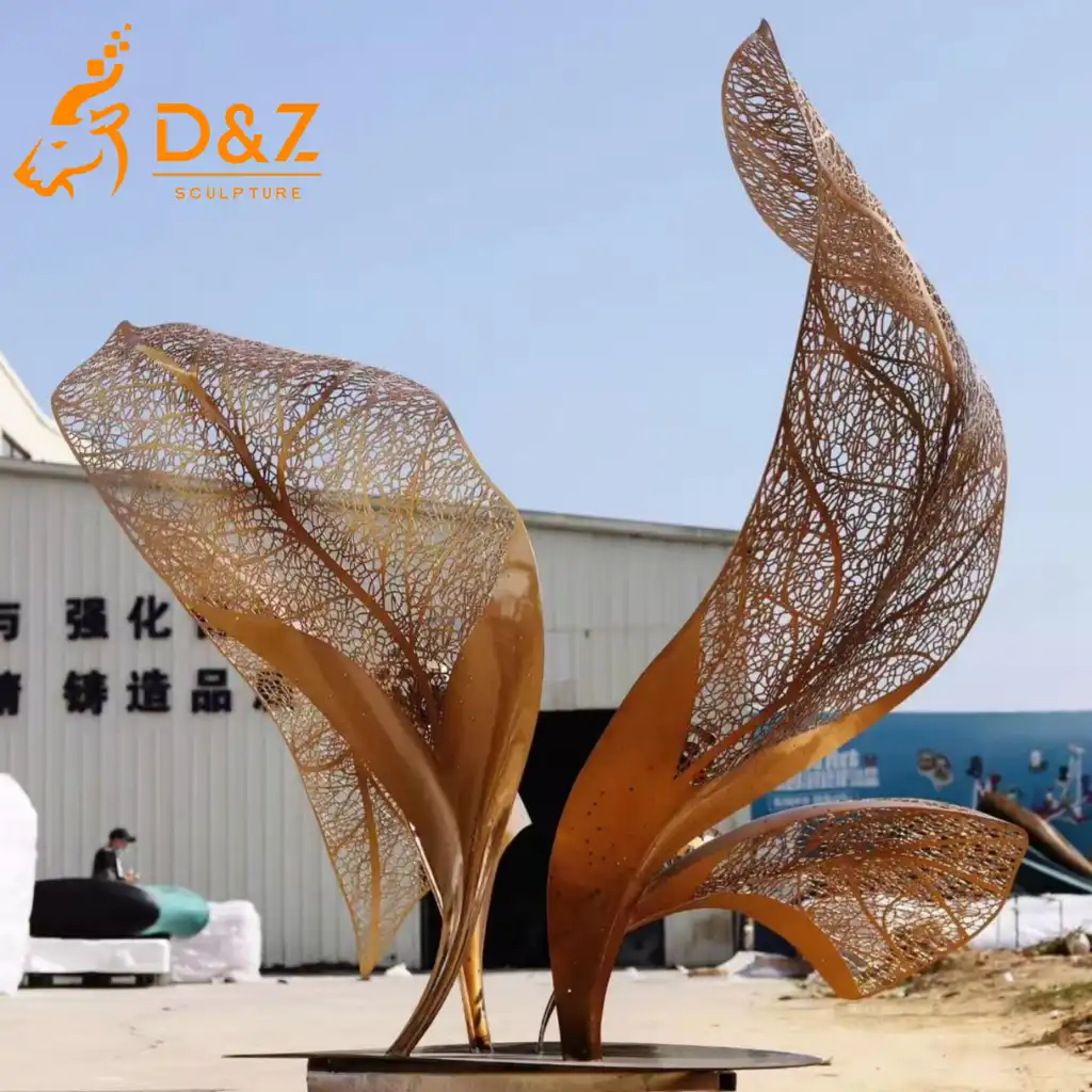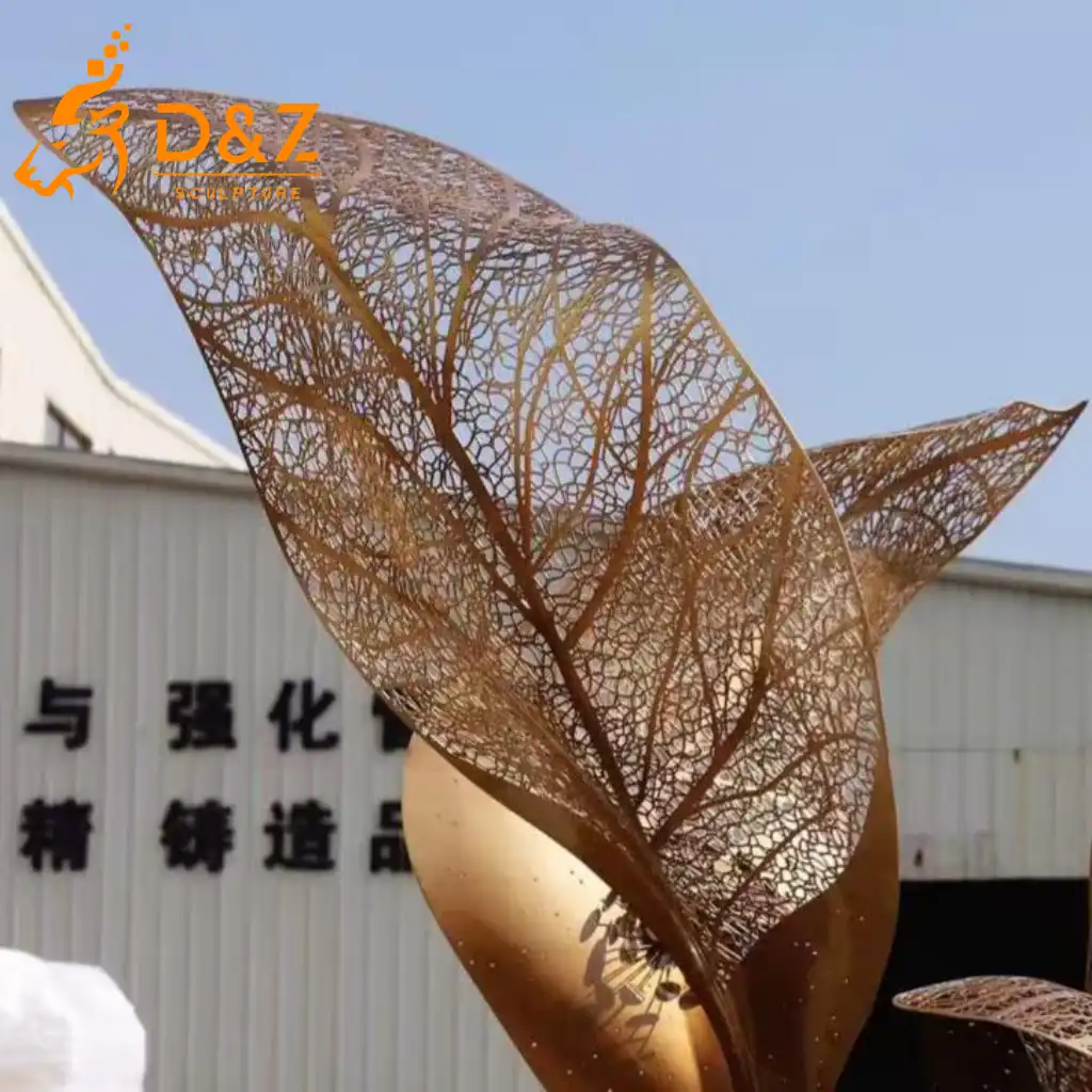Elevate your outdoor space with this striking gold leaf sculpture, a perfect fusion of nature-inspired elegance and contemporary craftsmanship. Designed by D&Z Art Sculpture, this large leaf sculpture transforms gardens, plazas, and luxury landscapes into iconic visual experiences, making it an ideal modern outdoor sculpture for high-end projects.