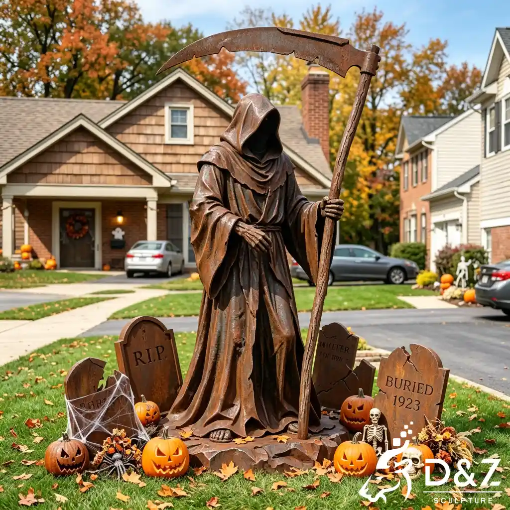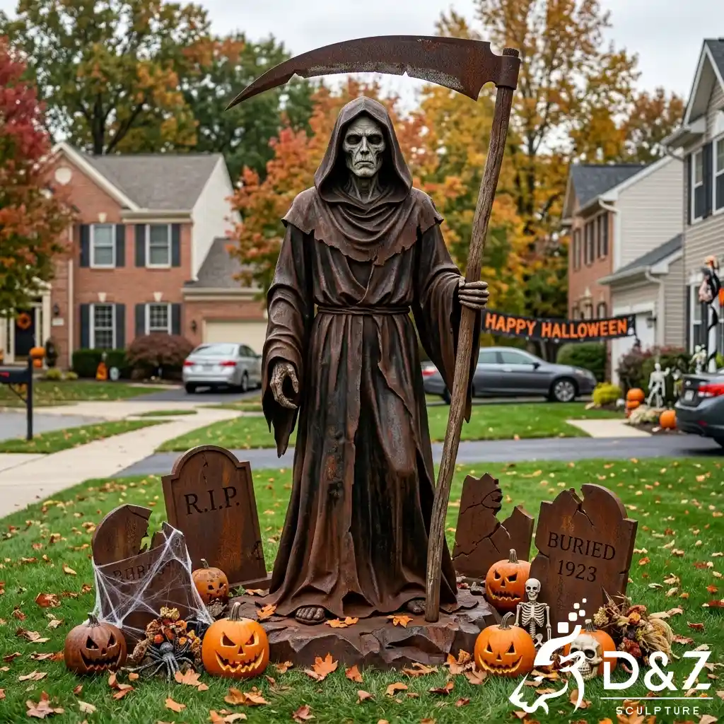 Whether for residential lawns or commercial setups, it’s a standout haunted house sculpture and one of the most eye-catching spooky statues for Halloween events.
