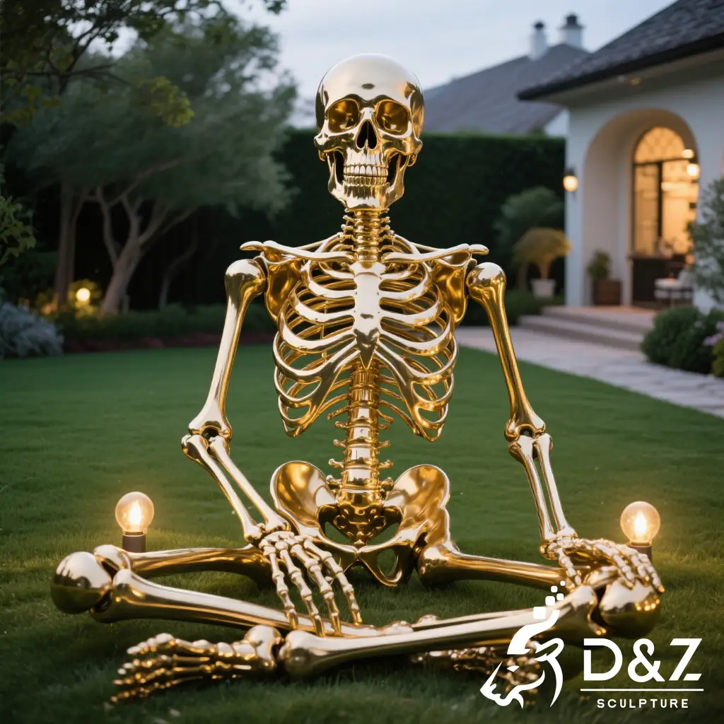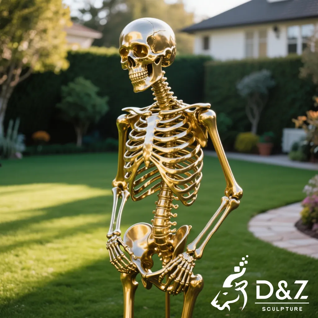 Bring bold visual impact to your space with this human skeleton sculpture, a premium outdoor installation by D&Z Art Sculpture. Designed for luxury gardens, haunted house displays, and commercial landscapes, this piece combines dark aesthetics with high-end craftsmanship, making it a powerful centerpiece for Halloween and beyond.