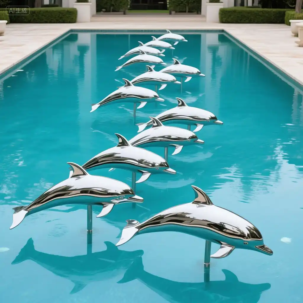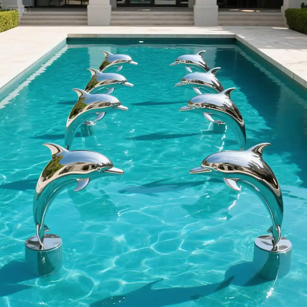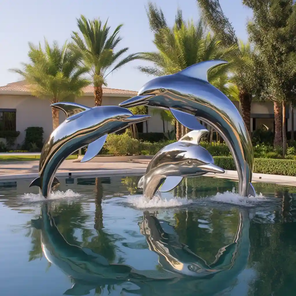 Made from high-grade stainless steel, this large dolphin sculpture combines artistry with strength. The mirror-polished surface resists rust and corrosion, maintaining its luster in a variety of climates. Whether placed beside a pool, along a promenade, or in a landscaped park, this sculpture endures the elements while delivering lasting beauty.