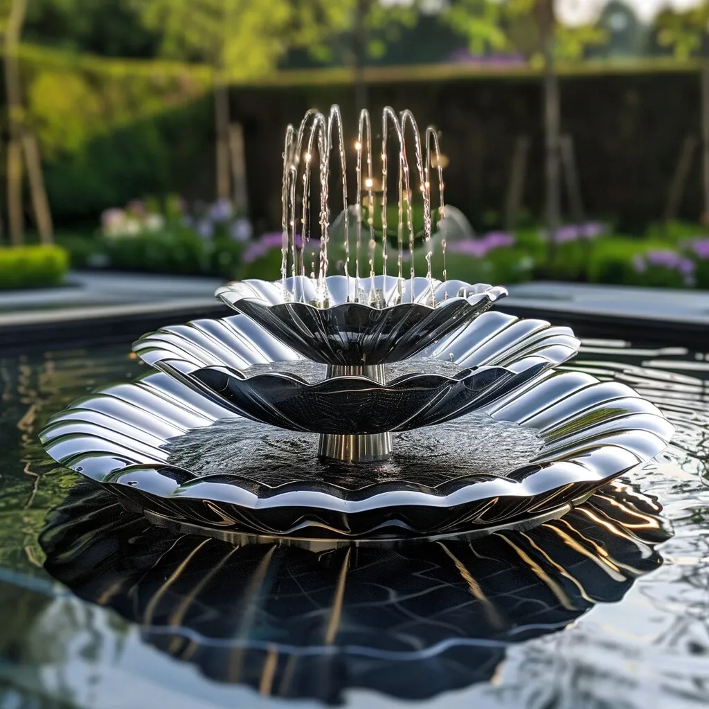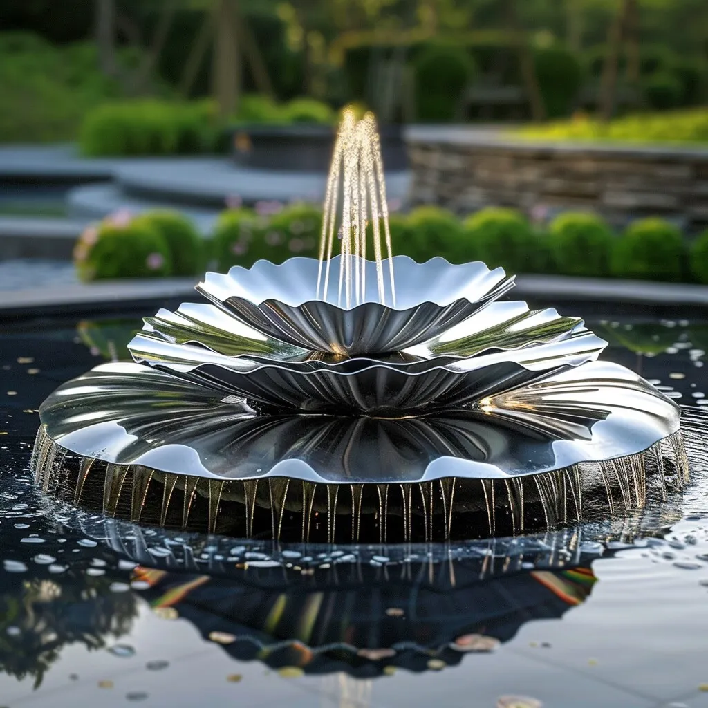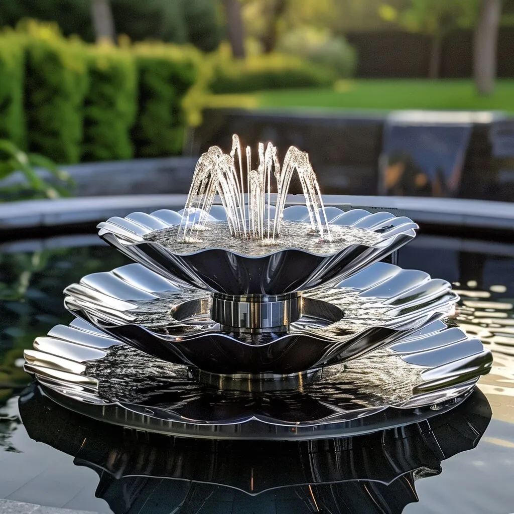 Elevate your outdoor space with a striking lotus flower fountain that captures the poetic essence of nature in a sculptural form. Designed like blooming lotus petals, this lotus fountain mirrors serenity and grace through its layered, ripple-like design. Each petal is crafted from highly polished stainless steel, reflecting the surrounding light and scenery — an homage to the lotus as a symbol of purity, harmony, and rebirth.
