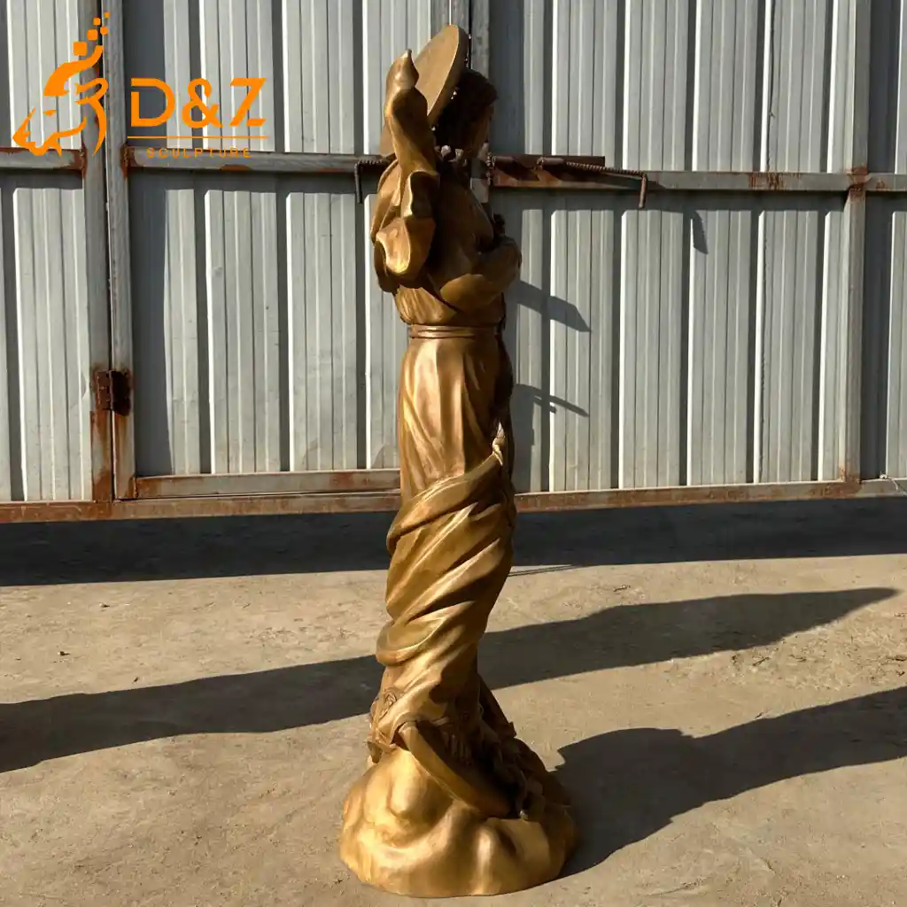 360-Degree Mastery: Every fold of her flowing robe, facial expression, and ribbon texture is hand-chiseled with stunning depth.