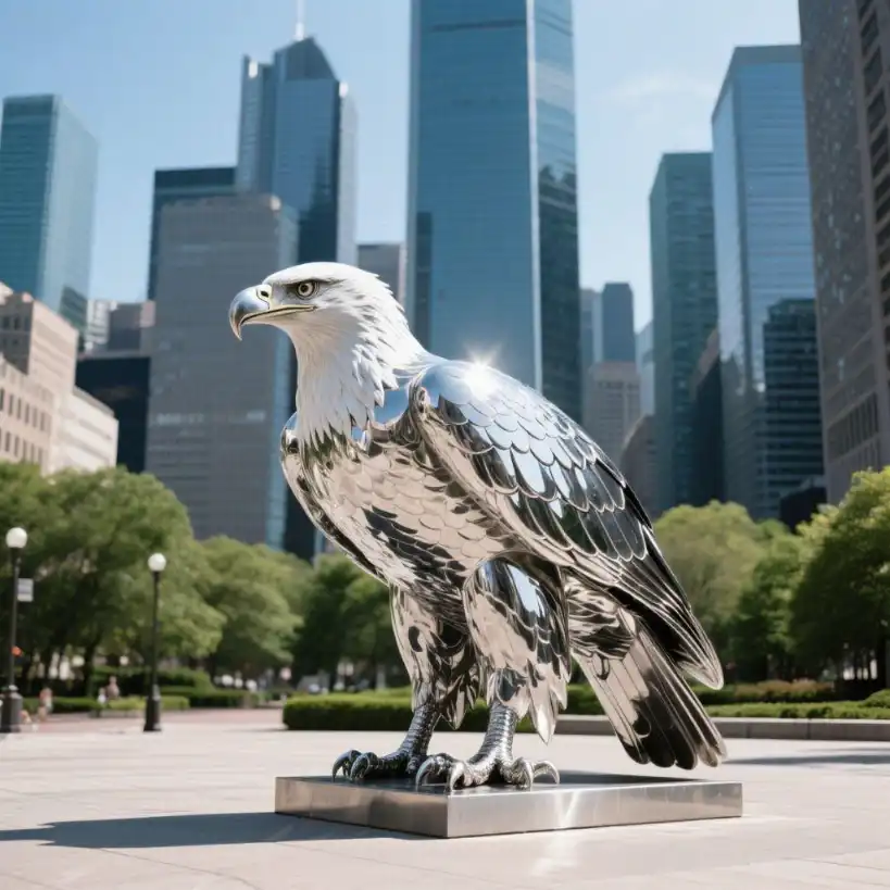 We craft each metal bald eagle statue from high-quality stainless steel, combining durability with a sleek, elegant appearance. Depending on your preference, we apply either a mirror-polished or brushed surface finish, ensuring the sculpture resists harsh weather while retaining its visual brilliance. Moreover, our expert artisans use precision welding and polishing techniques to highlight the intricate feather patterns and vivid expression, adding depth and character to every piece.