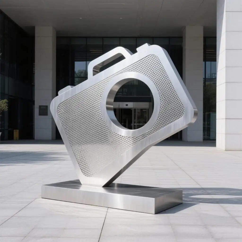 The large metal camera sculpture captures the timeless charm of analog photography in a bold and contemporary way. Inspired by a vintage film camera, this giant stainless steel installation brings creativity and nostalgia to life. Ideal for urban parks, museums, or cultural events, the sculpture serves as a powerful visual anchor for photography lovers and passersby alike.