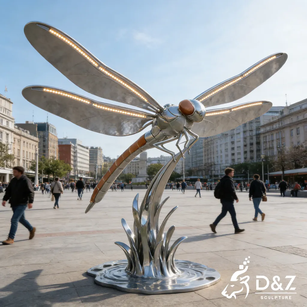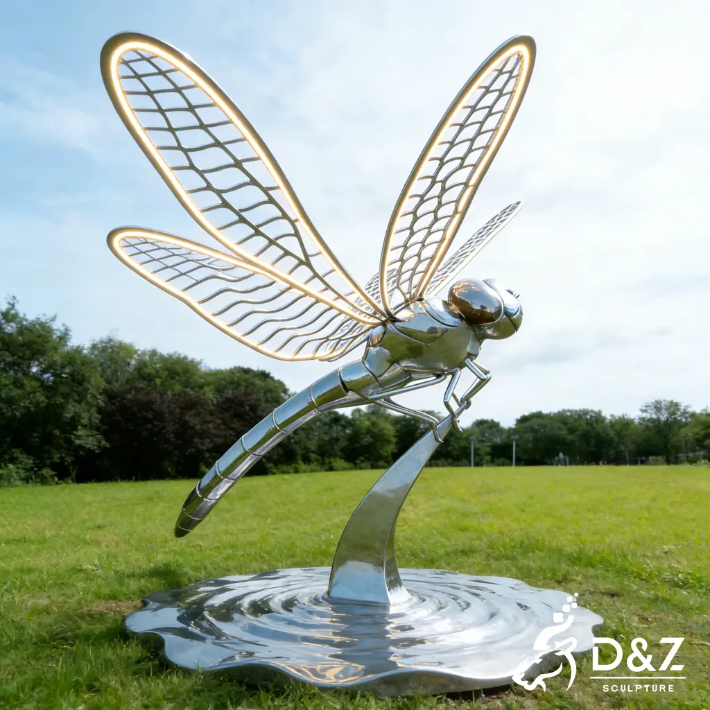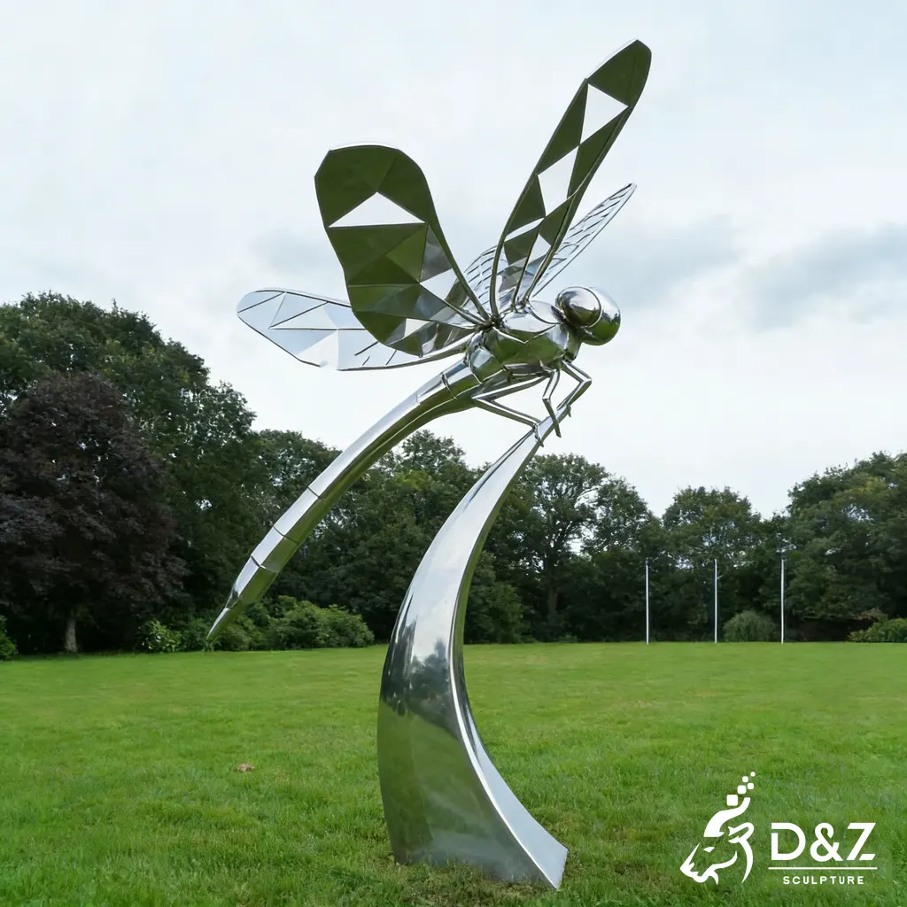 Our sculpture dragonfly collection is designed with a modern, minimalist aesthetic that captures the spirit of transformation and light. This large dragonfly sculpture features an aerodynamic body and intricate wing patterns, available in both realistic and abstract styles. Designed primarily as an outdoor dragonfly sculpture, it harmonizes perfectly with natural elements like water, wind, and flora, making it a favorite for landscape architects seeking a sophisticated dragonfly garden sculpture. This dragonfly metal sculpture combines the delicate, fleeting beauty of nature with the eternal strength of industrial-grade stainless steel.