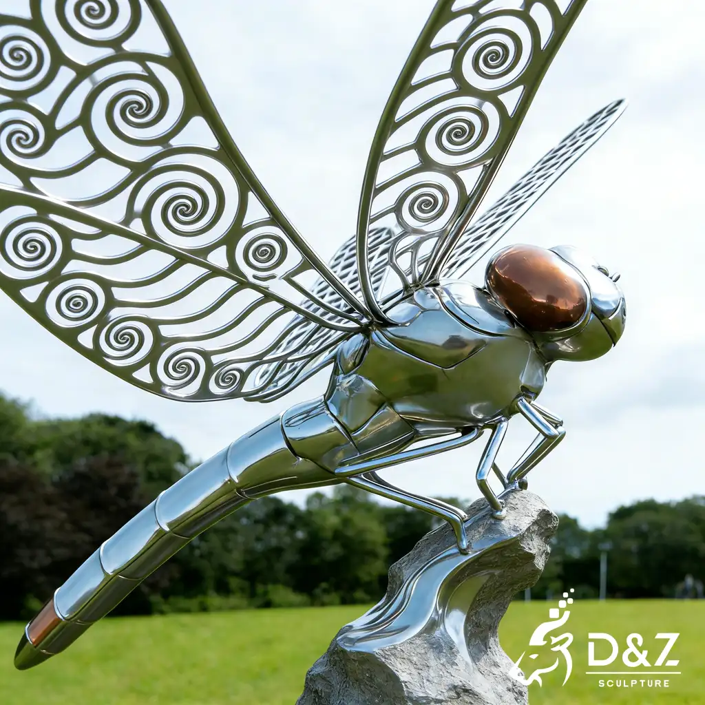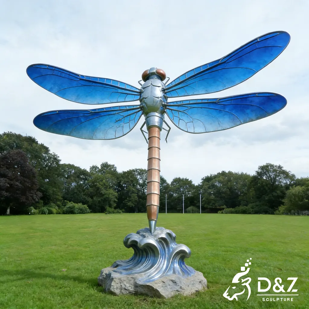 Enhance your outdoor environment with the ethereal elegance of our metal dragonfly sculpture by D&Z Art Sculpture. The large dragonfly garden sculpture serves as a breathtaking focal point for luxury estates, corporate plazas, and public parks. Our professional team offers a seamless, one-stop solution, spanning from artistic concept to global installation.