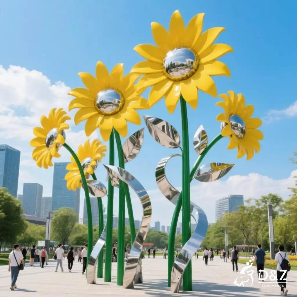 At D&Z Art Sculpture, we transform nature into bold, modern expressions. This flower sculpture series is designed to evoke emotional responses and encourage community interaction. The sunflower theme is part of our broader flower sculpture art collection, which includes tulips, daisy sculptures, and abstract floral forms.