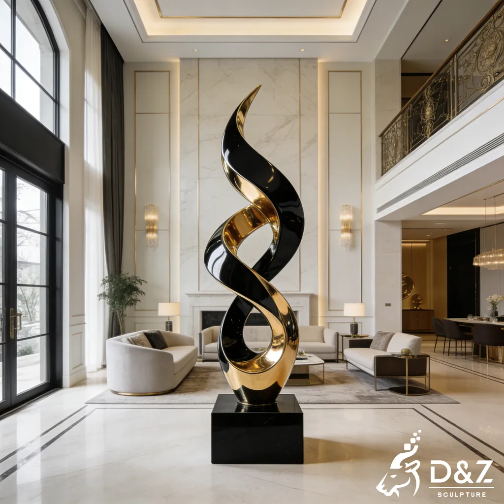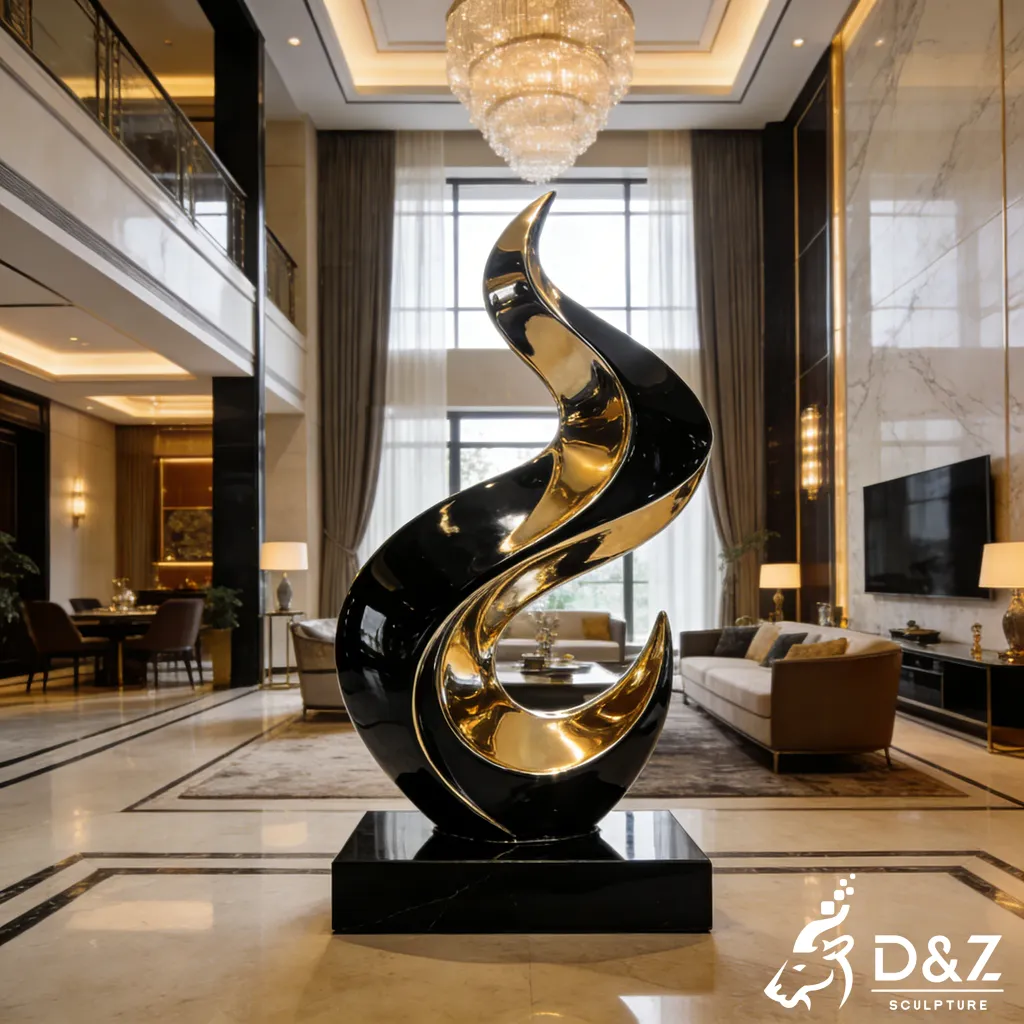 Elevate your architectural projects with a modern indoor sculpture that redefines luxury and sophistication. Crafted from premium materials, this abstract masterpiece integrates a stunning black and gold finish to suit high-end interior environments or customized outdoor landscapes.