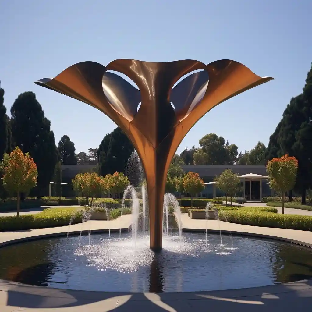 The corten steel morning glory fountain is crafted with precision, focusing on both artistic form and practical function. The design captures the soft curves of the trumpet flower, expressing the vitality of nature in abstract form. As water flows gently from the center of the sculpture into the pool below, light dances across its weathered surface, creating an ever-changing play of color and reflection. Every detail is engineered to withstand outdoor exposure while delivering lasting visual impact.