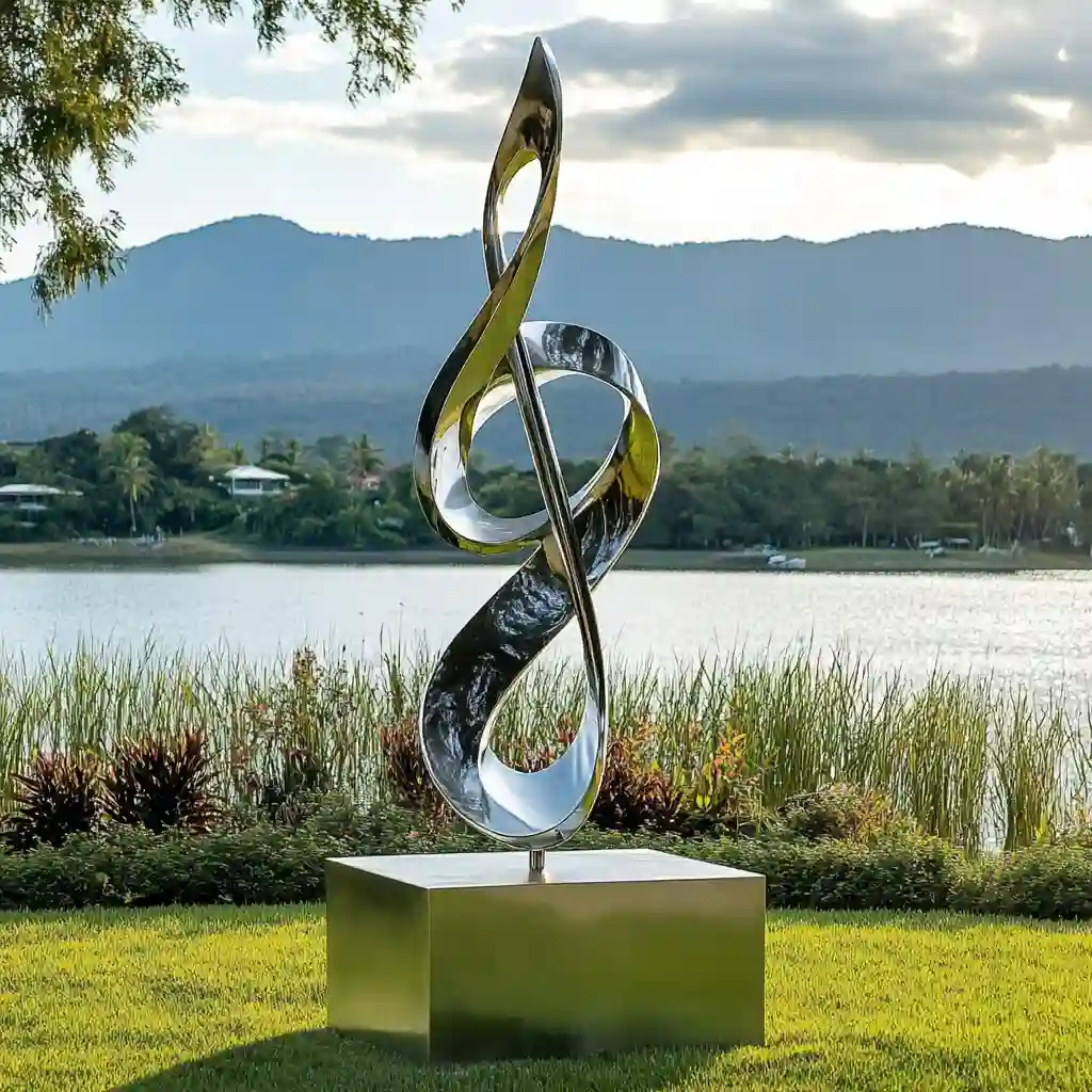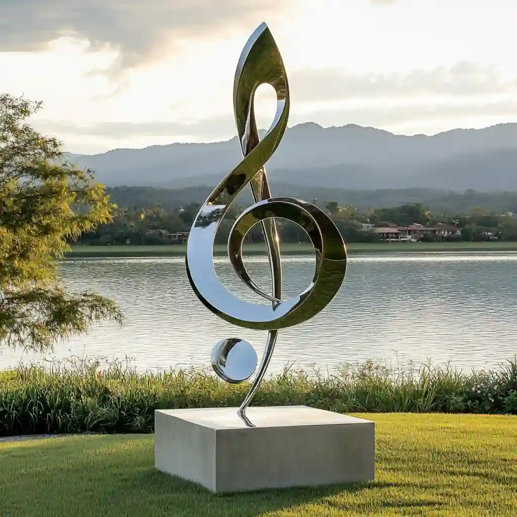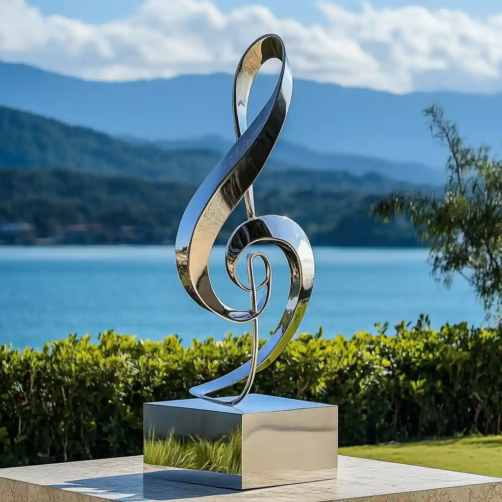 Crafted from premium 304 or 316 stainless steel, this high-end metal music note sculpture resists corrosion and endures harsh outdoor conditions easily. Its mirror-polished or matte finish reflects light strikingly, shining bright under sunlight or glowing softly with nighttime illumination. It’s more than just an outdoor sculpture music note. It’s a beacon of contemporary artistry.