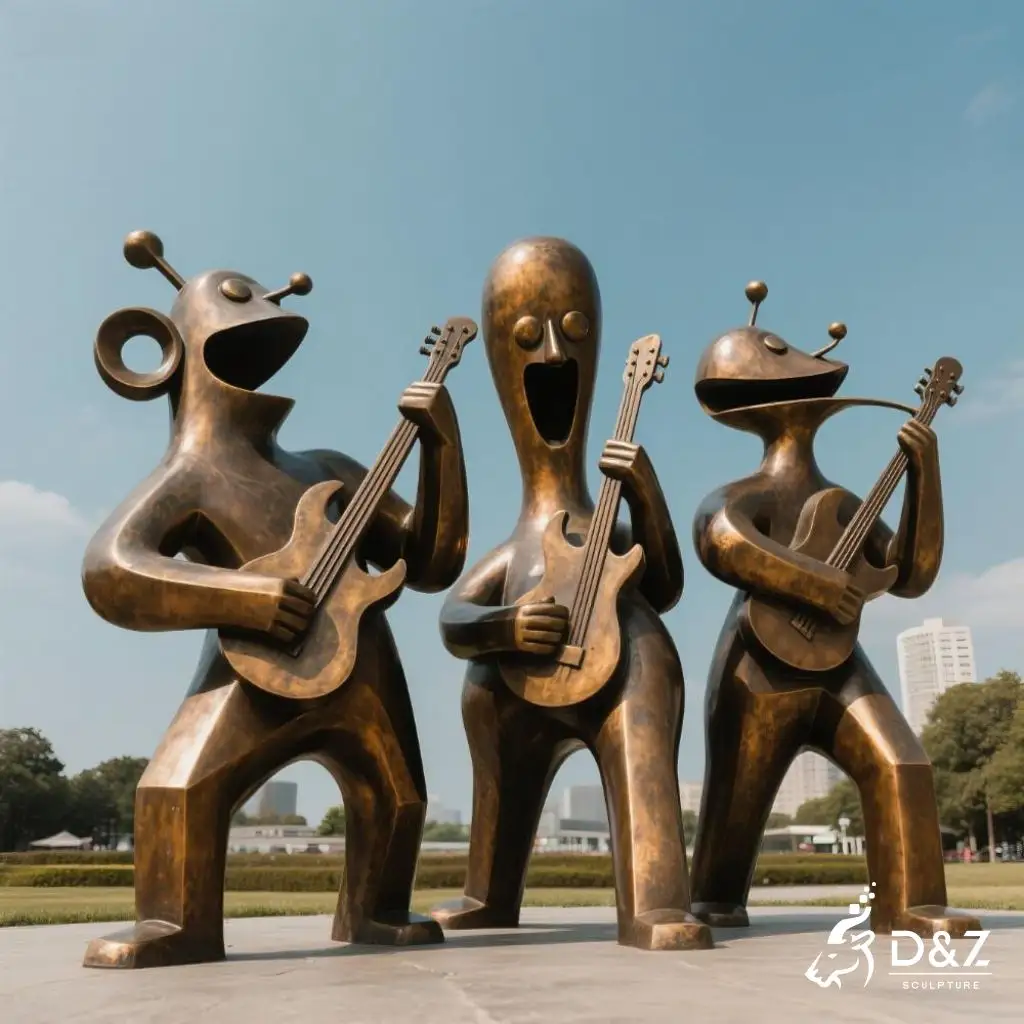 D&Z Art Sculpture‘s bronze musician statue is not just a decoration but a true abstract music sculpture. Its exaggerated forms and animated gestures add playful energy while retaining artistic depth. Perfect for installations where creativity and imagination are encouraged.