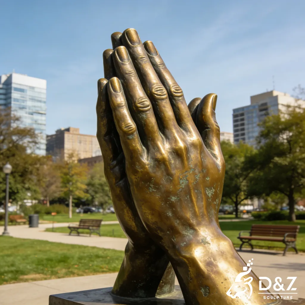 This praying hands sculpture is a large-scale bronze artwork designed for outdoor gardens, memorials, and religious spaces. Crafted from premium bronze and fully customizable, this praying hands sculpture for sale is ideal for B2B buyers seeking durable, symbolic, and high-impact public art.