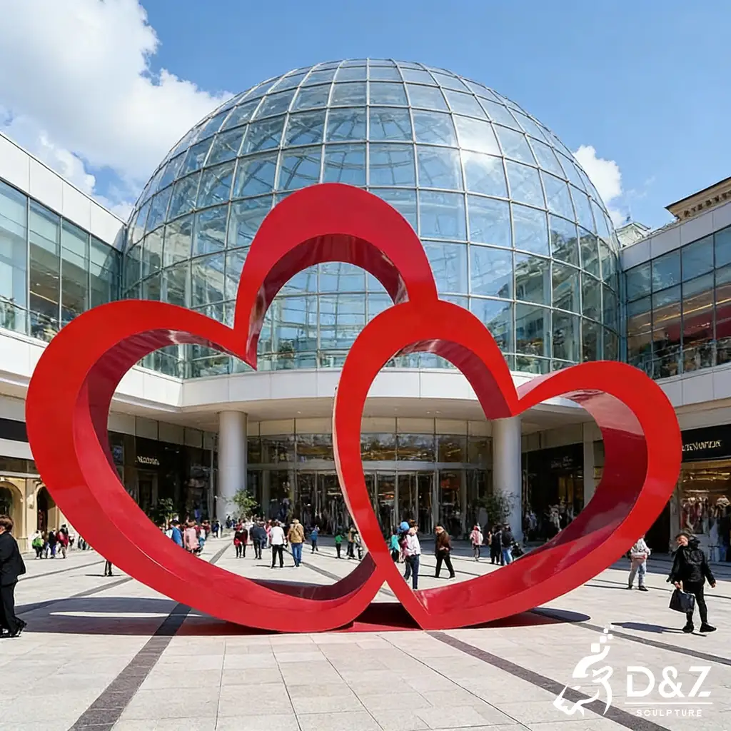 This red heart sculpture by D&Z Art Sculpture is a striking, large-scale outdoor artwork made of premium metal. Featuring an elegant double-heart design, it symbolizes love, unity, and connection. Fully customizable in size, color, and finish for public art and landscape projects.