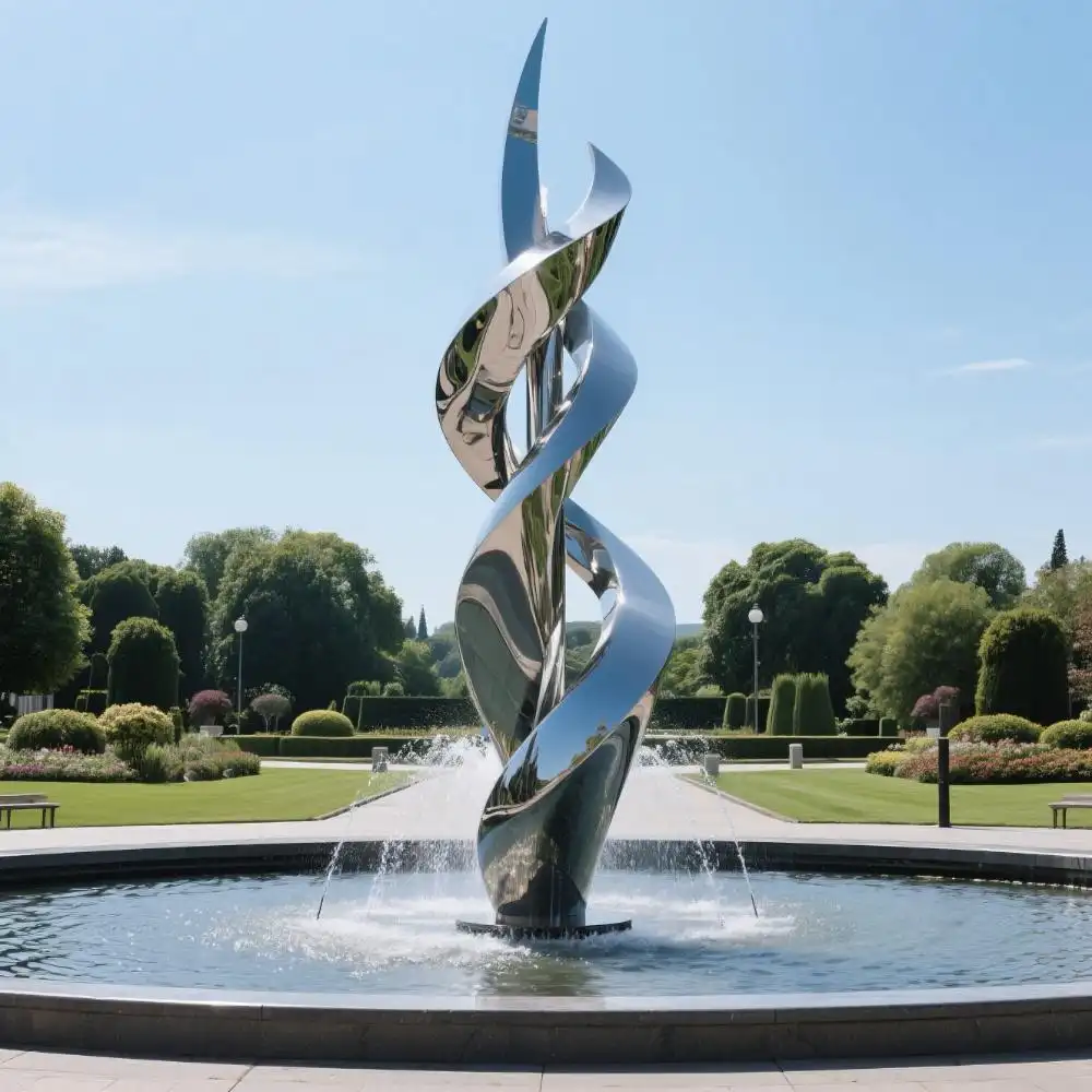 Crafted from high-grade 316L stainless steel, this abstract metal ribbon sculpture fountain resists corrosion, maintains structural integrity, and gleams with a mirror-polished finish. Skilled artisans shape each ribbon strand to achieve graceful curves and seamless joints. The internal structure is reinforced to support both the weight of the sculpture and the integrated metal water fountain elements, ensuring durability in even the most challenging environments, such as coastal or high-humidity regions.
