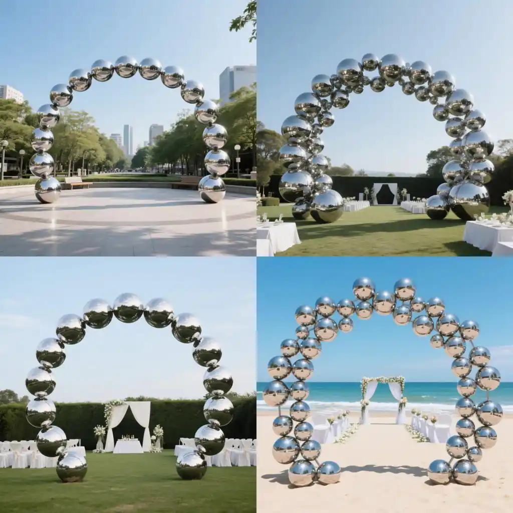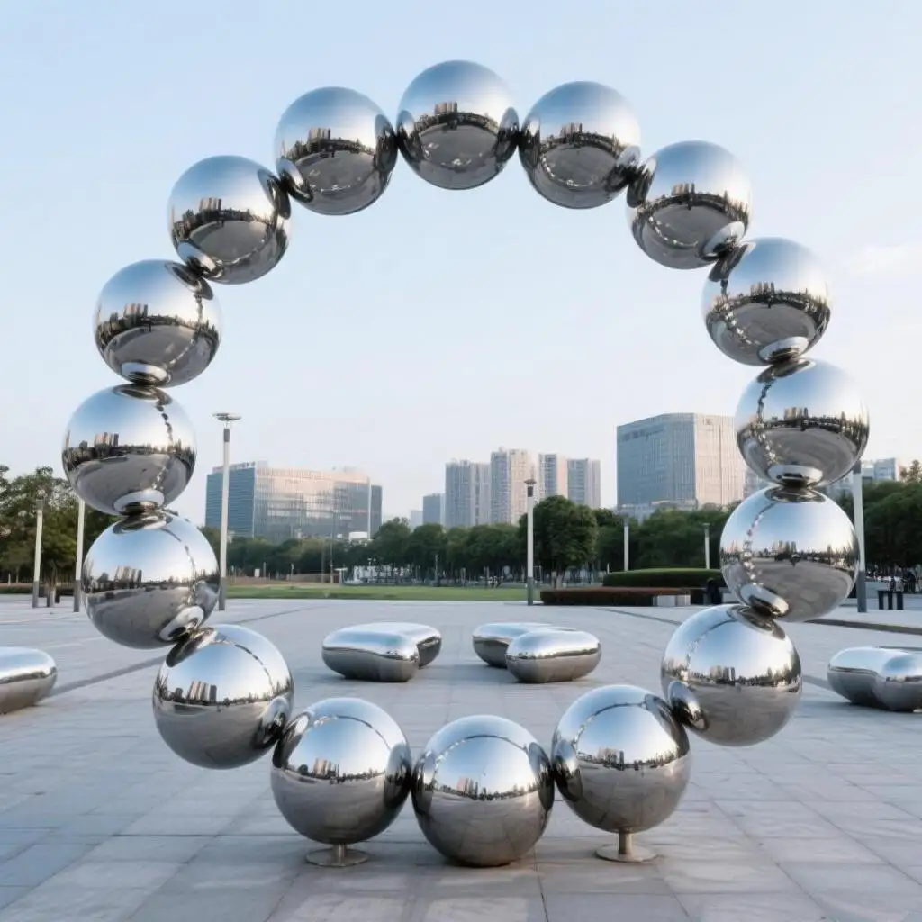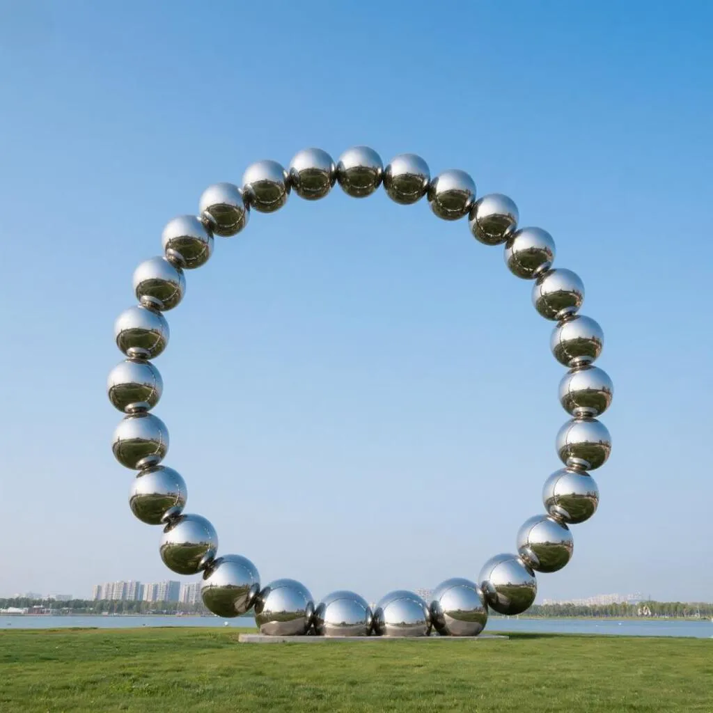Elegant and versatile, the ring-shaped ball sculpture is a bold statement in modern art and spatial design. Its geometric simplicity and polished surface create a powerful visual experience. Whether showcased as a perfect circle or transformed into an elegant arch, this sculpture adapts seamlessly to a wide range of environments—from public parks to private gardens, from resort courtyards to romantic wedding venues.