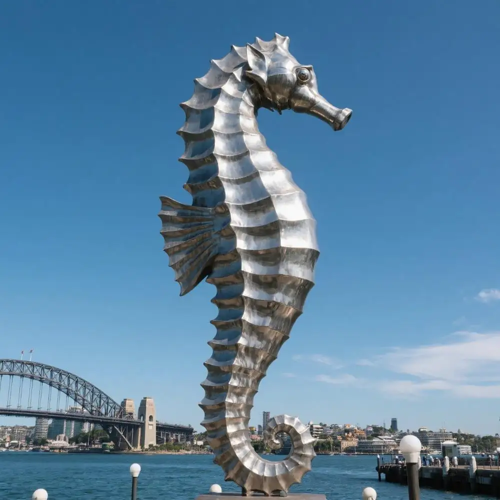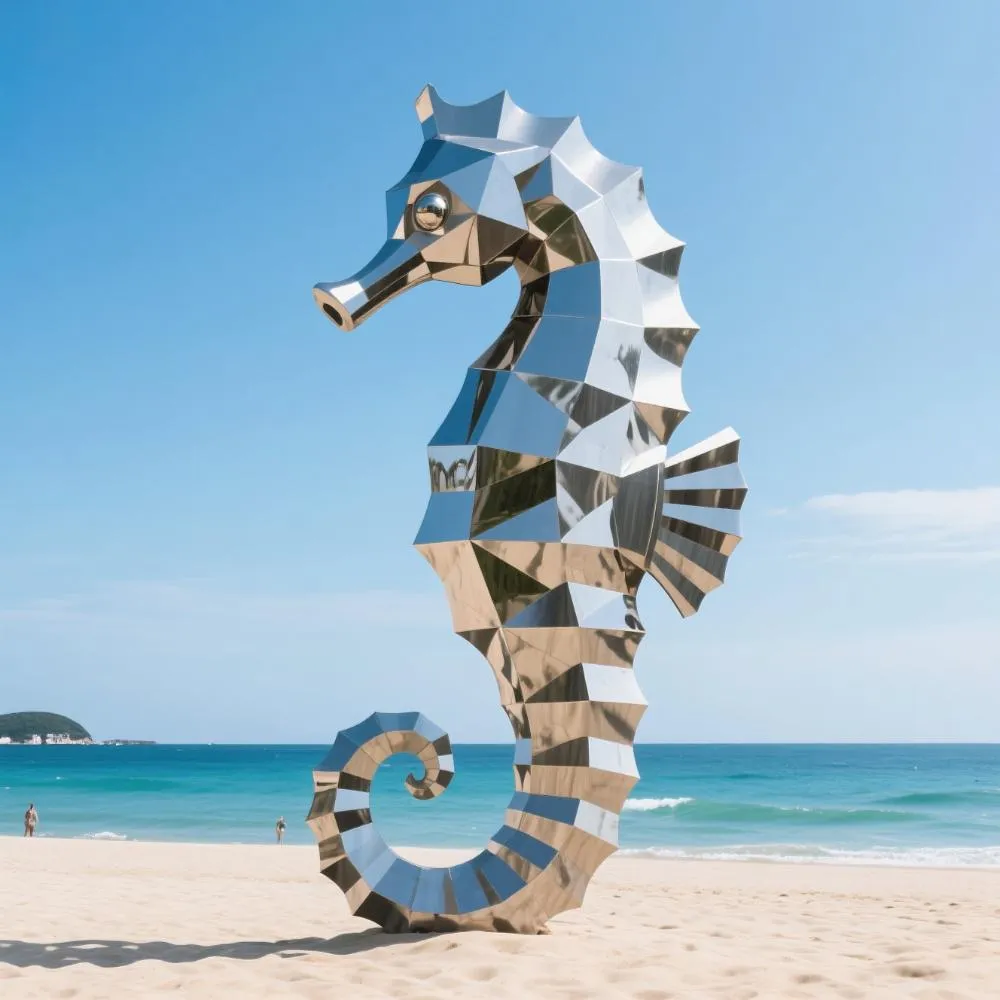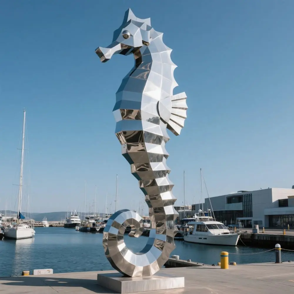 Inspired by the grace and mystery of the sea, this large seahorse sculpture transforms marine beauty into striking public art. Its bold form, flowing lines, and mirror-polished surface create an unforgettable visual presence in any outdoor space. Designed for durability and impact, it serves as both a decorative focal point and a symbol of coastal identity. Perfect for urban waterfronts, luxury resorts, and themed environments, this sculpture captures the essence of ocean-inspired design with refined craftsmanship.
