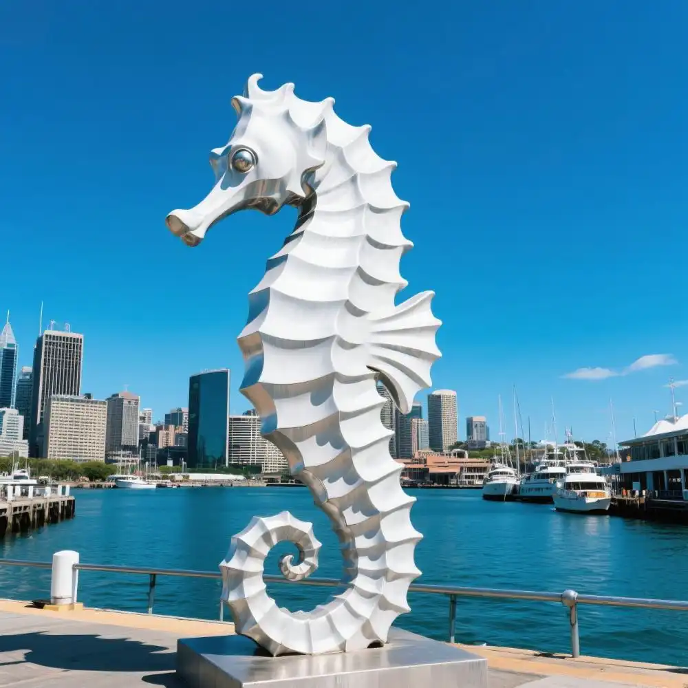 Made from 304-grade stainless steel, this metal seahorse sculpture is built to last. Its mirror-polished surface resists corrosion, even in harsh coastal conditions. The durable structure ensures it can stand strong in public plazas, seaside parks, and resort entrances for years without fading or damage.