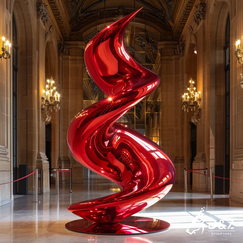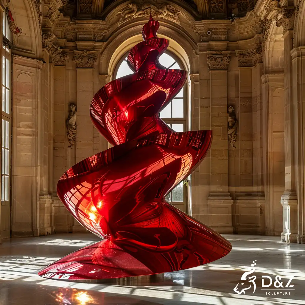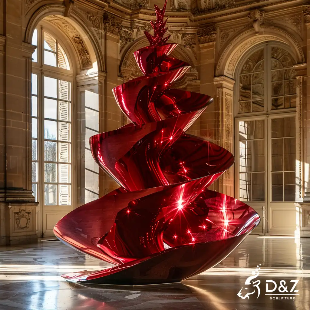 This isn’t your traditional Christmas tree. As an abstract Christmas tree sculpture, it swaps classic branches for a sleek metal spiral shape, merging modern aesthetics with festive spirit. The vivid red finish (a staple for red Christmas tree decorations) turns this metal Christmas tree into a focal point; its spiral ribbon-like form nods to decorating a Christmas tree with ribbon, but in a sculptural, lasting way. Though crafted as a Christmas tree sculpture, its modern lines work as year-round art, adding contemporary flair to any space.